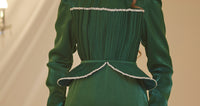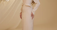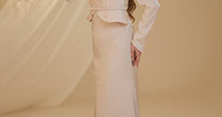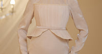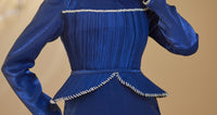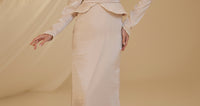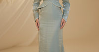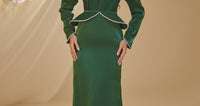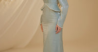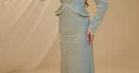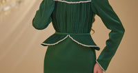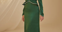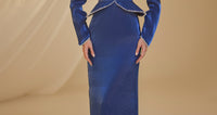 Düz kalem etek tarzında ve belinde peplum detayı olup incilerle süslenmiş tafta kumaş olan efsun abiye modelimiz arkadan gizli fermuarlı olup astarlıdır.