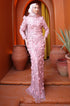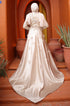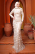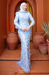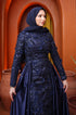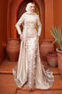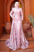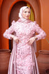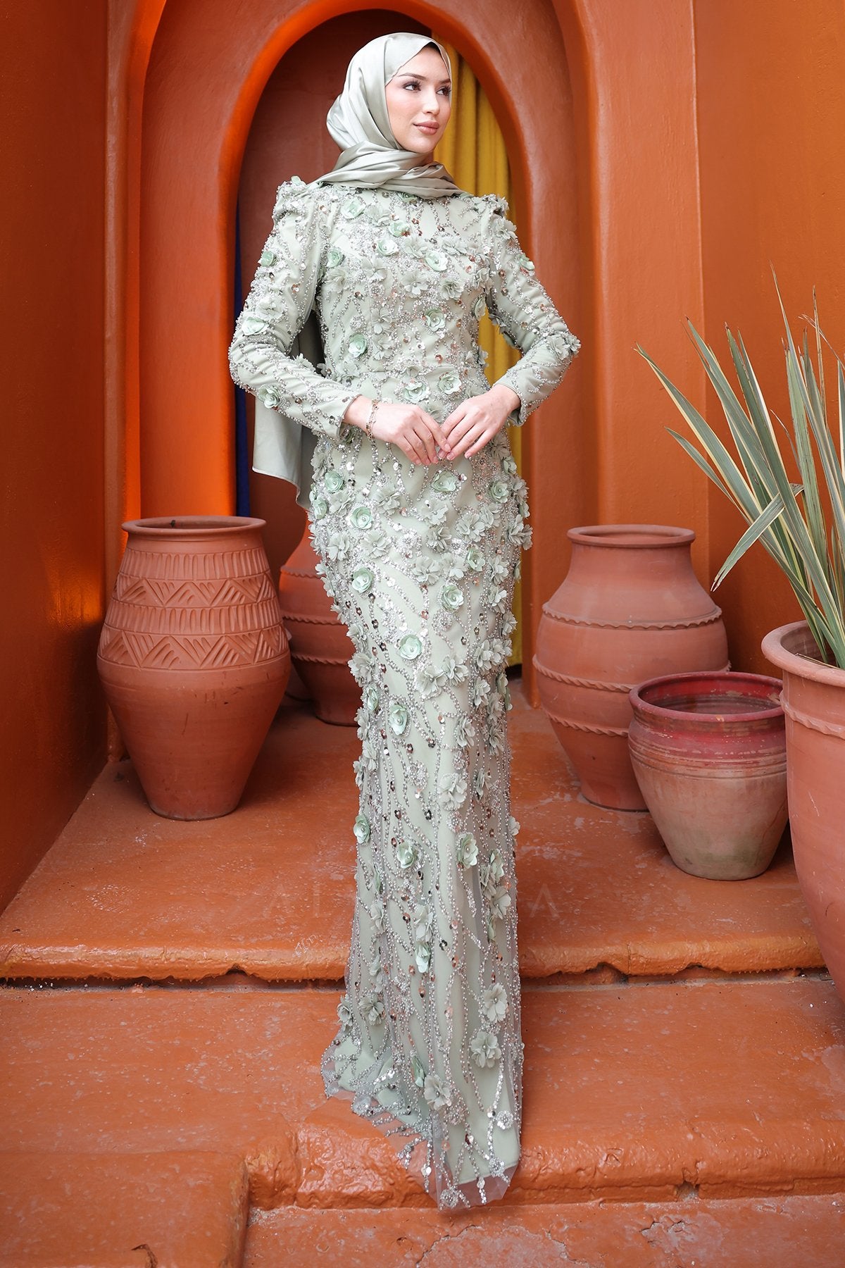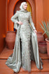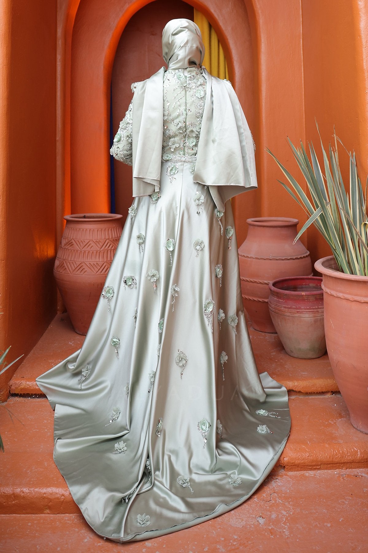 - Üzerindeki üç boyutlu çiçek aplikeleri ve zarif taş detaylarıyla özel davetlerde göz alıcı ve feminen bir stil sunar, ayrıca kuyruk portatiftir.