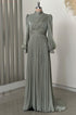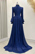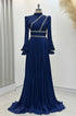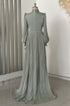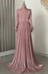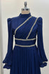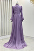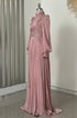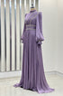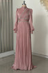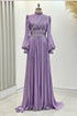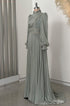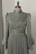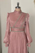 Unser Abendkleidmodell Hermione aus amerikanischem Chiffon besticht durch Perlenstickerei und Ballonärmel im Oberteil, hat einen verdeckten Reißverschluss am Rücken und ist gefüttert.
