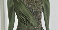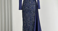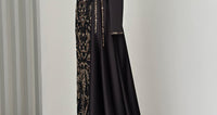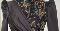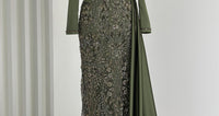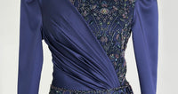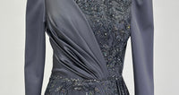 Das Produkt ist aus erstklassigem Satin gefertigt und mit Perlen- und Steinstickereien verziert.