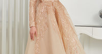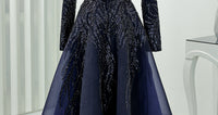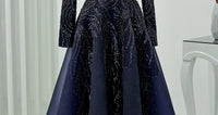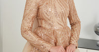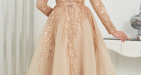 Unser mittellanges Abendkleid mit Kordelzug im Rücken ist ein vollständig besticktes und bauschiges Modell; unser Produkt ist gefüttert.