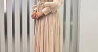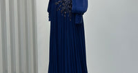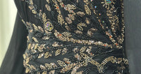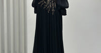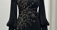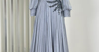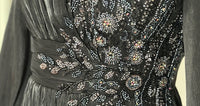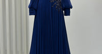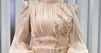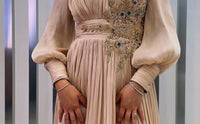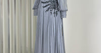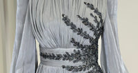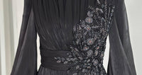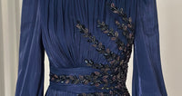 Our Astoria evening dress model, made of American chiffon fabric and with beaded embroidery on the waist, has a hidden zipper at the back and is lined.