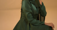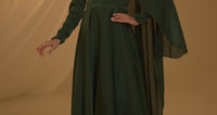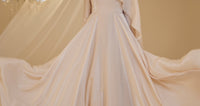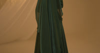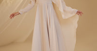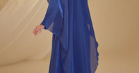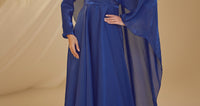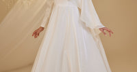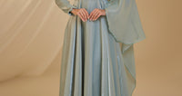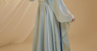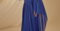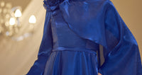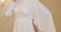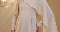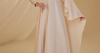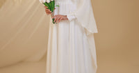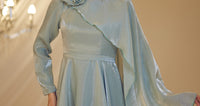 Notre modèle de Robe Modeste claire avec cape portable à partir de l'épaule et détails floraux possède une fermeture éclair cachée à l'arrière et est doublé.