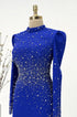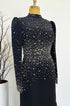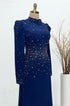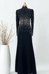 - Notre modèle de robe Eftelya offre un aspect scintillant avec des perles et des incrustations de pierres sur la partie supérieure et possède une fermeture éclair dissimulée à l'arrière.