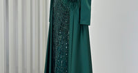 Le produit est en tissu satin de première qualité et orné de perles et de pierres.