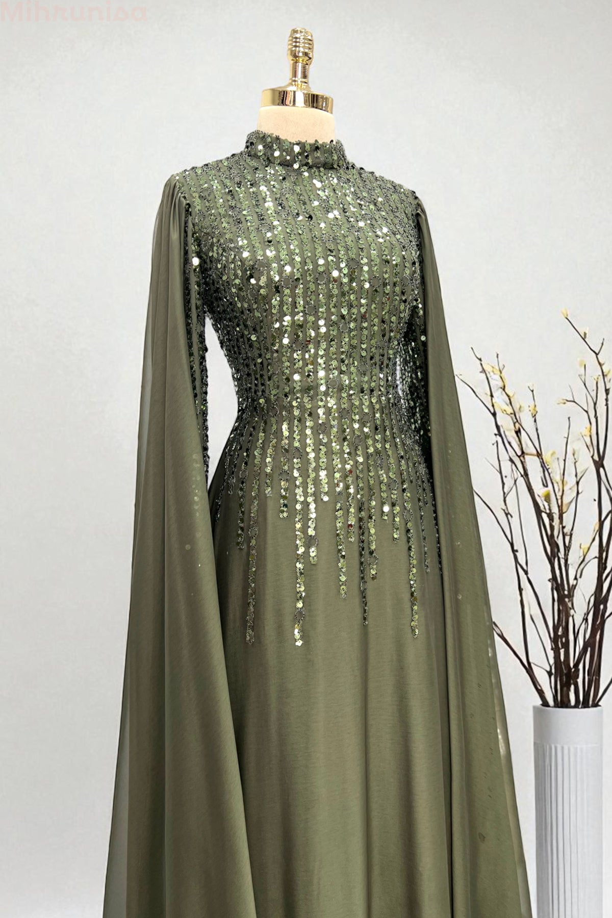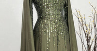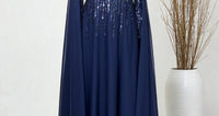 - La conception des manches pèlerine et le détail scintillant du haut offrent une apparence élégante lors des invitations spéciales.
