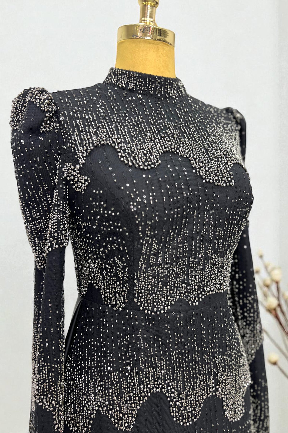- Tamamı boncuk işleme ve saten pelerin detay amara abiye modelimiz arkadan gizli fermuarlı ve astarlıdır.