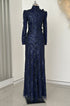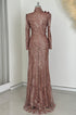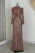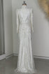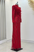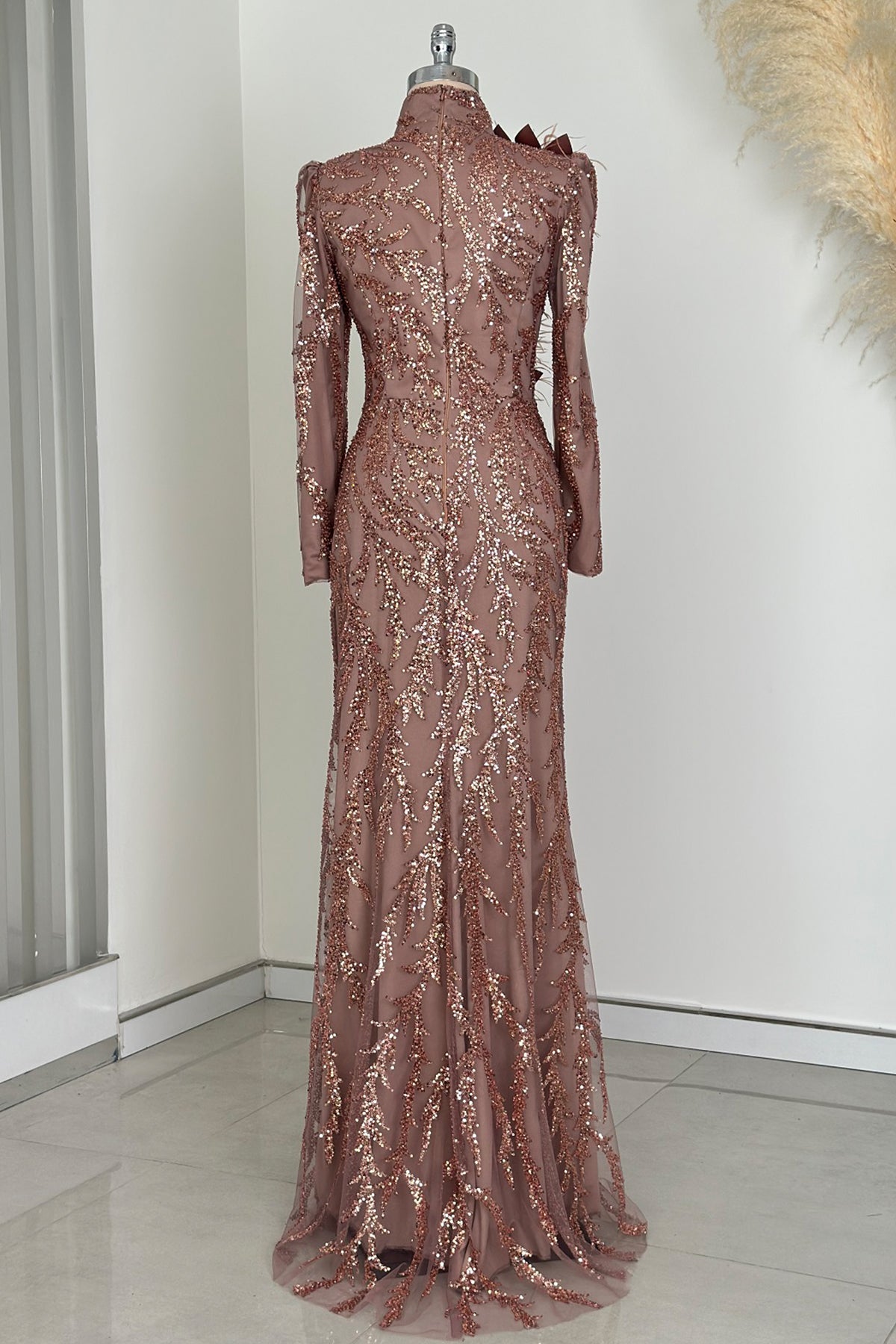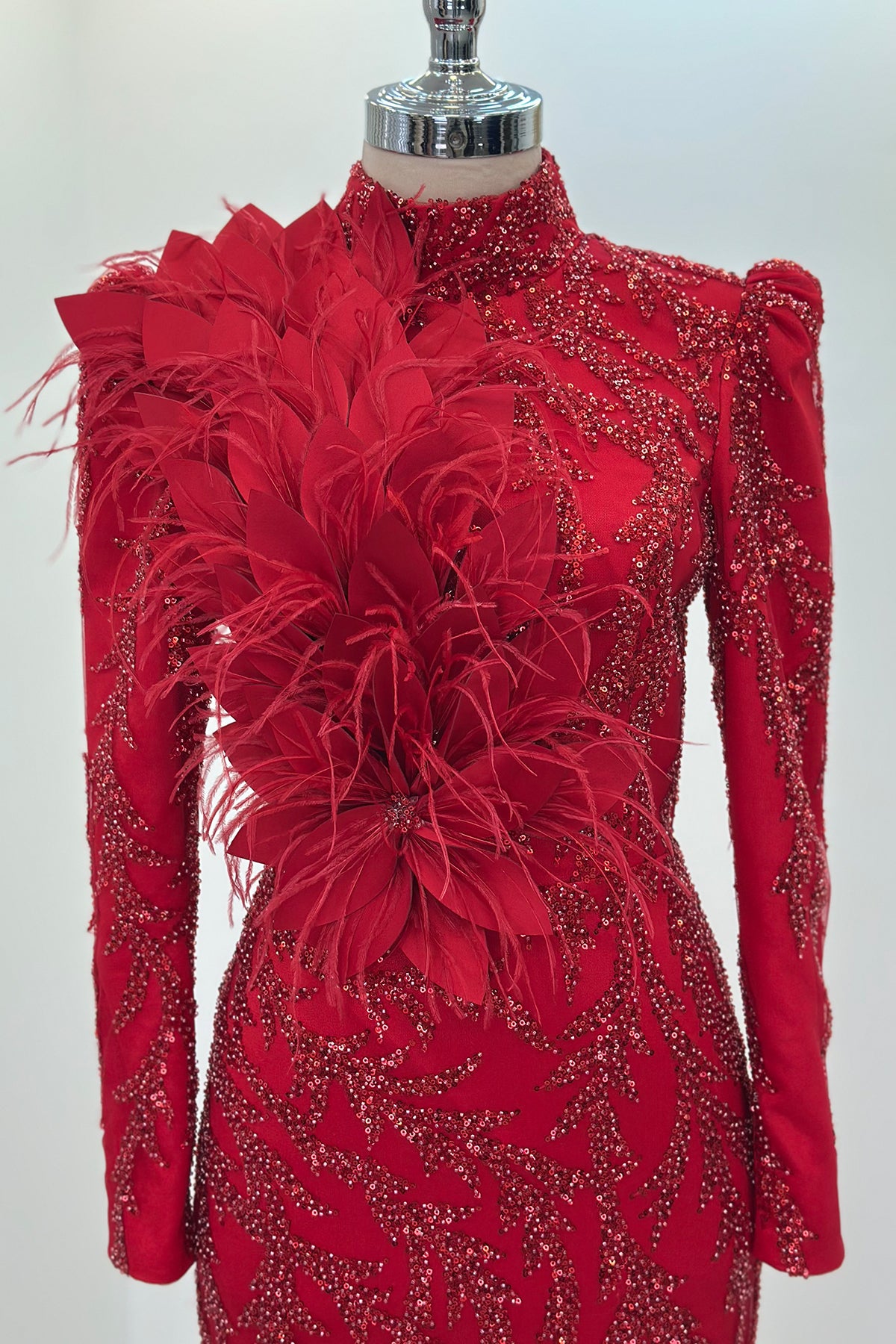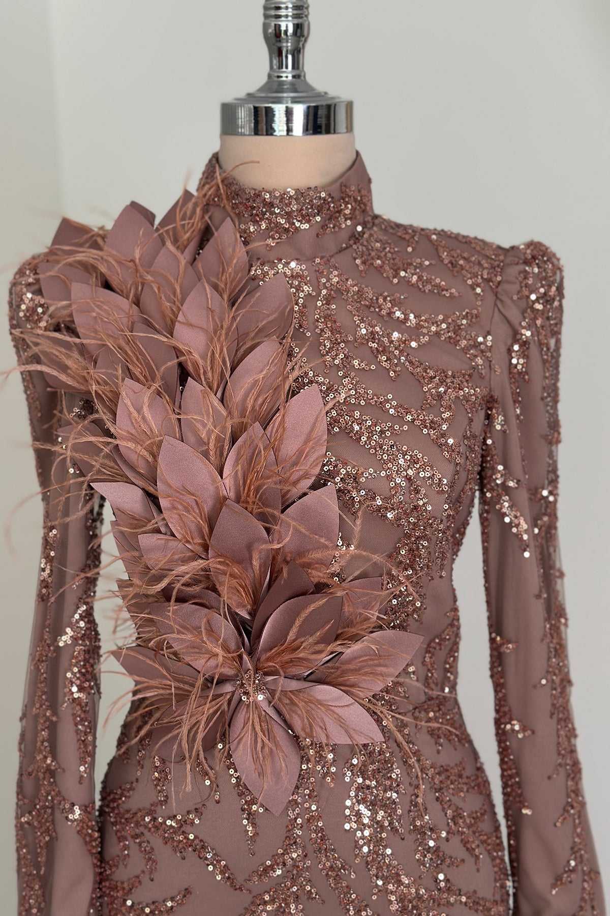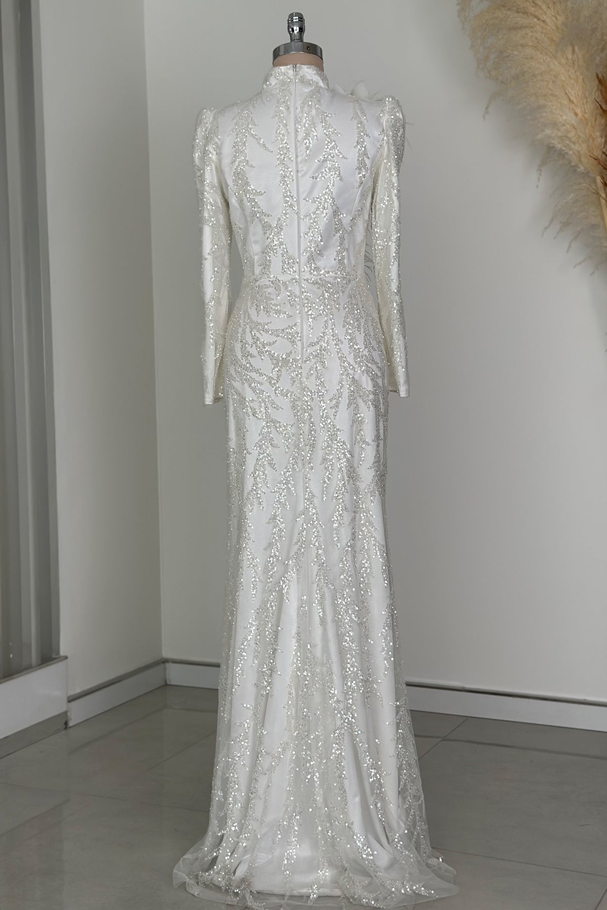 Boydan tül boncuk işlemeli tasarım ve omuz detayında büyük yaprak detayı olan amara abiye modelimiz arkadan gizli fermuarlı olup astarlıdır.
