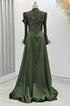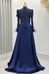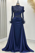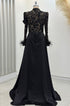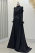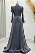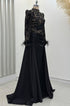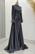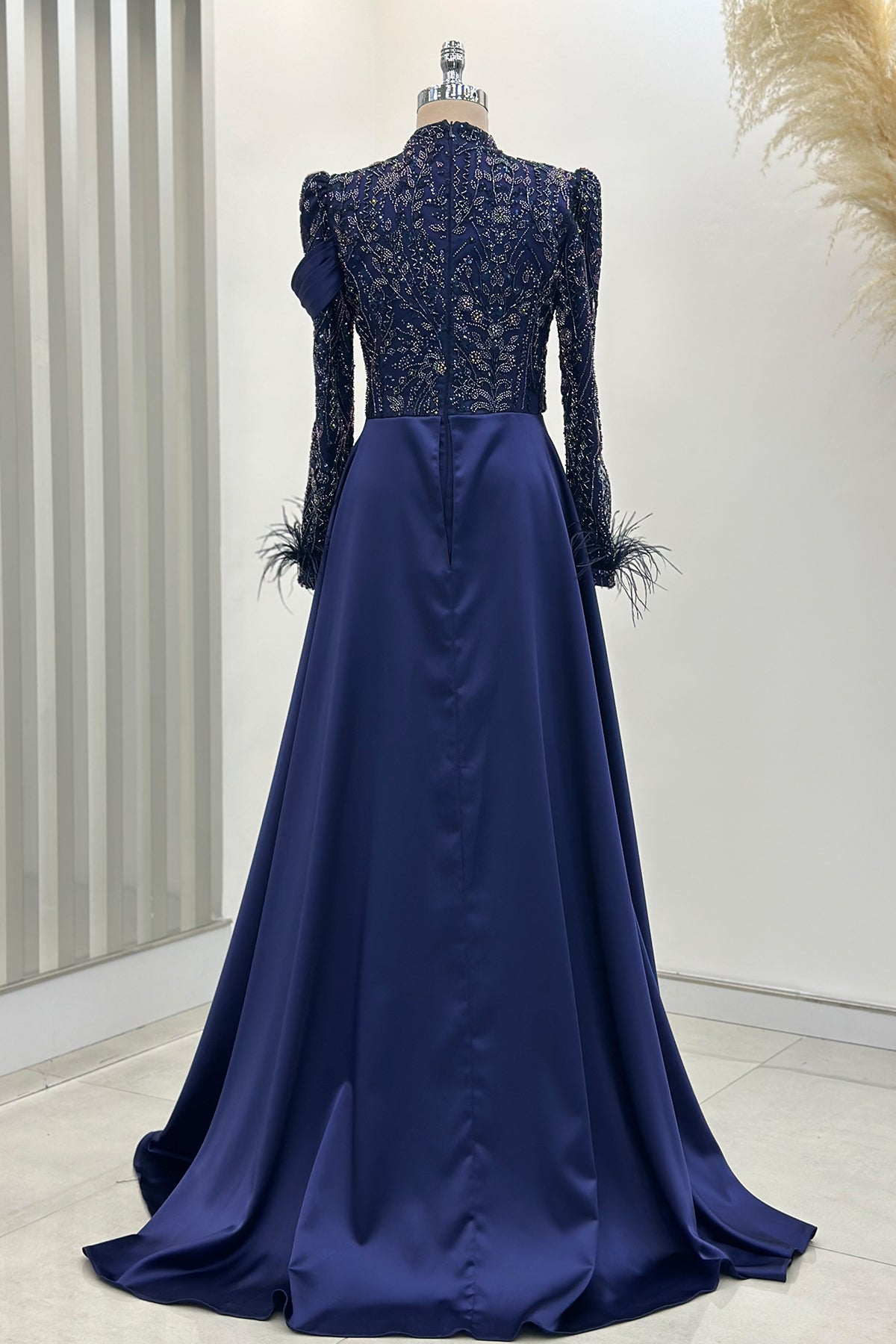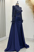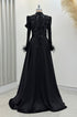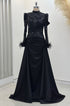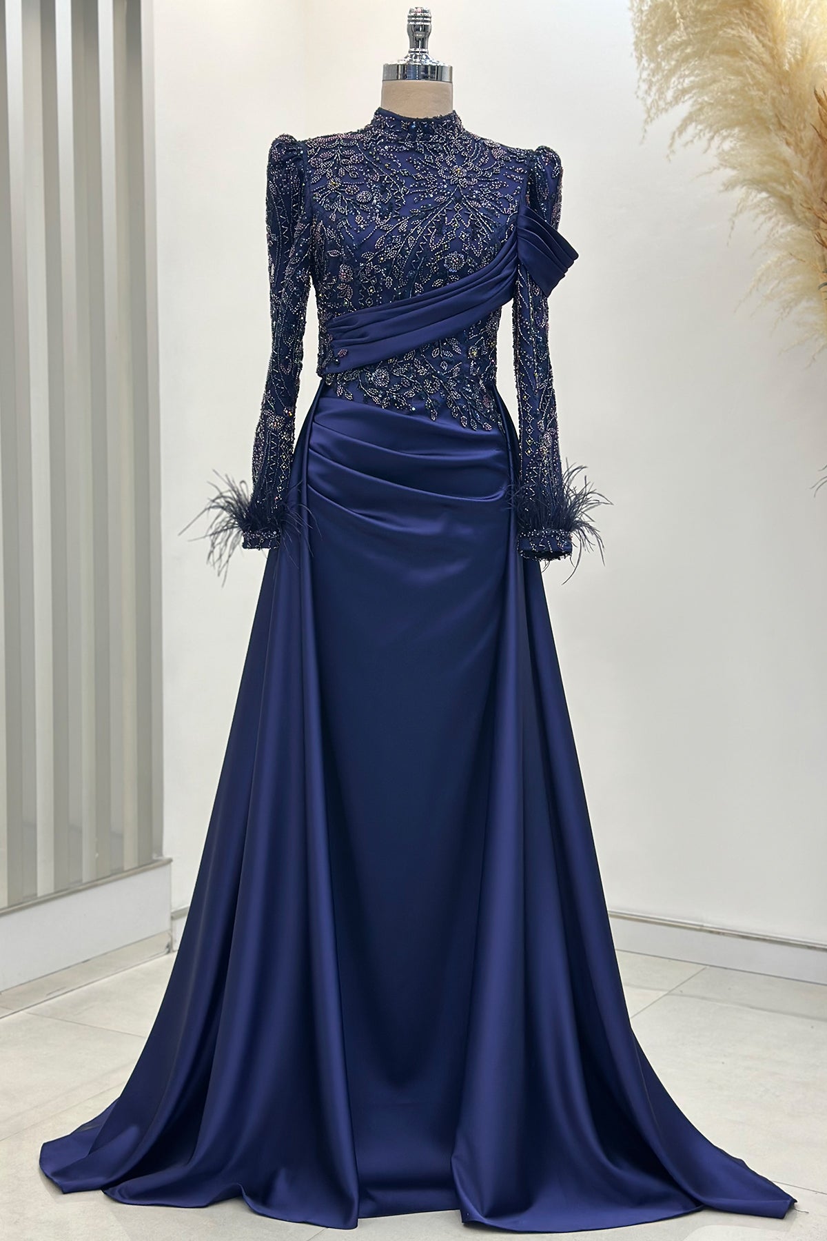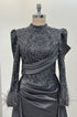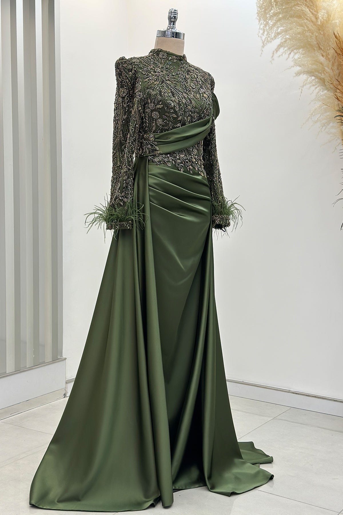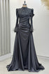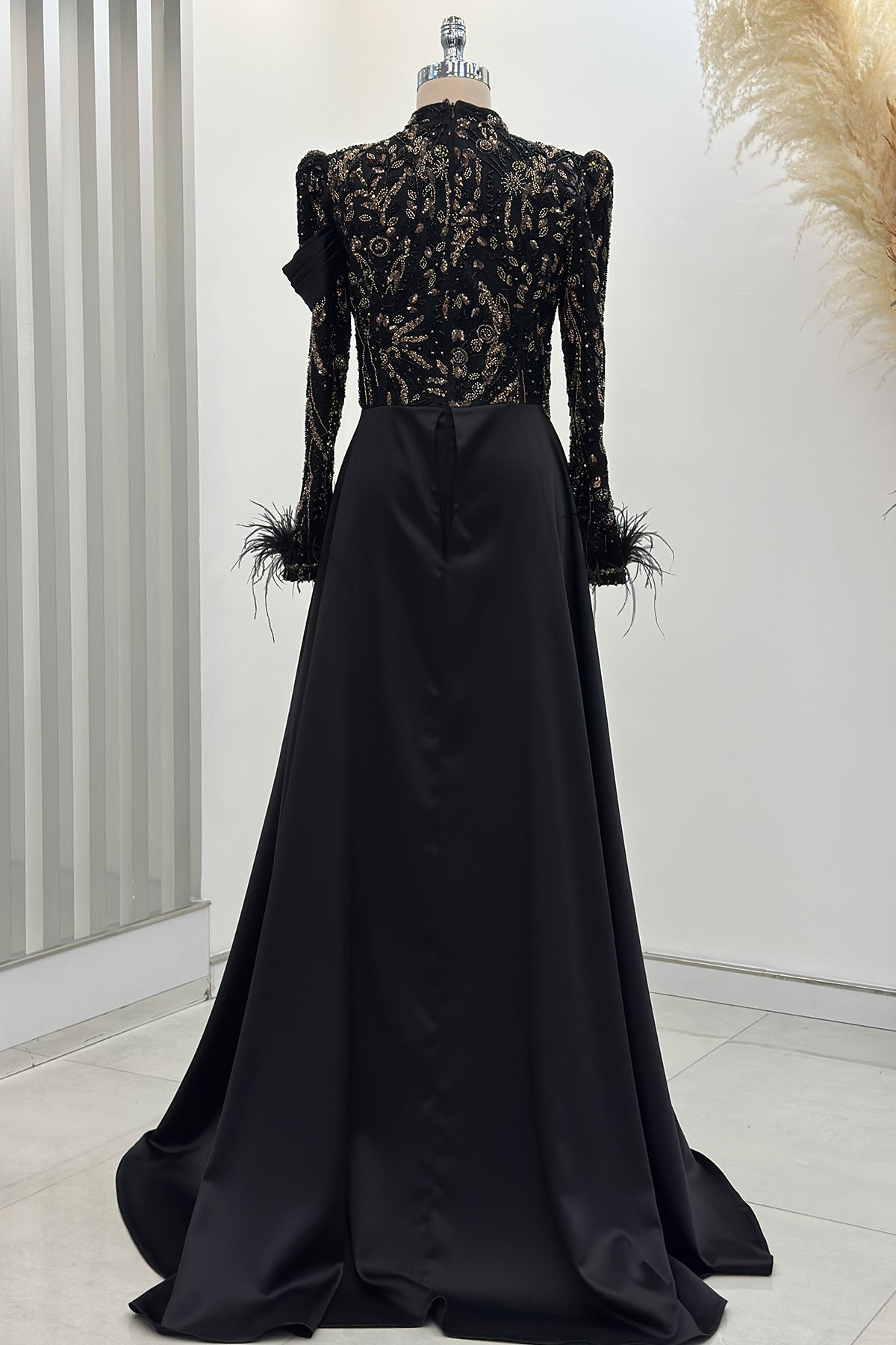 Bel kısmındaki çapraz drapaj tasarımı ve dantel işlemeli, boncuk detaylı, yüksek yakalı tasarımı ile anabel abiye modelimiz arkadan gizli fermuarlı olup astarlıdır.