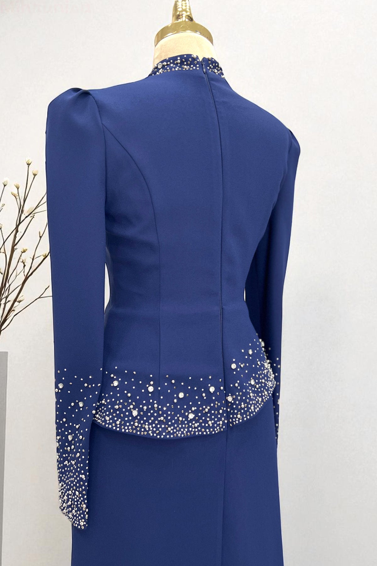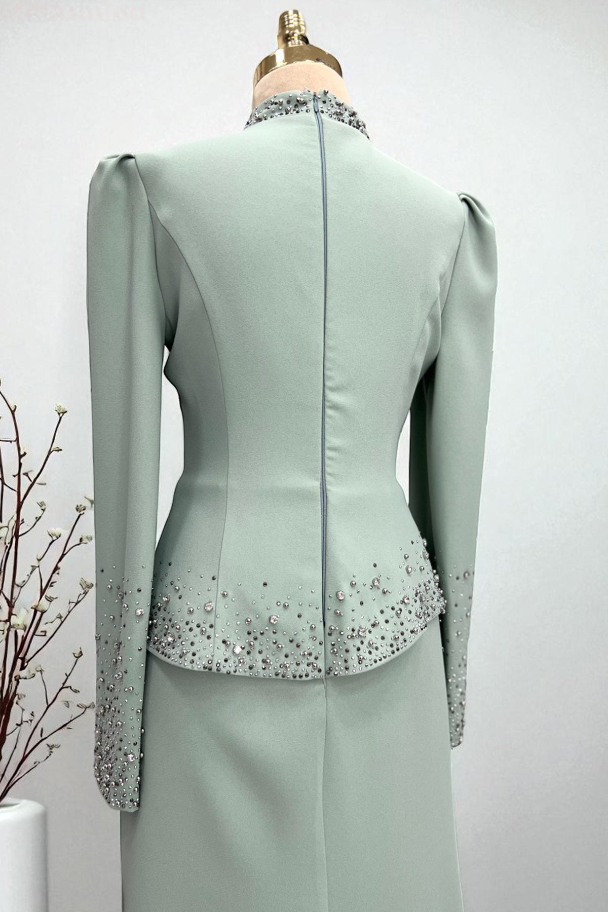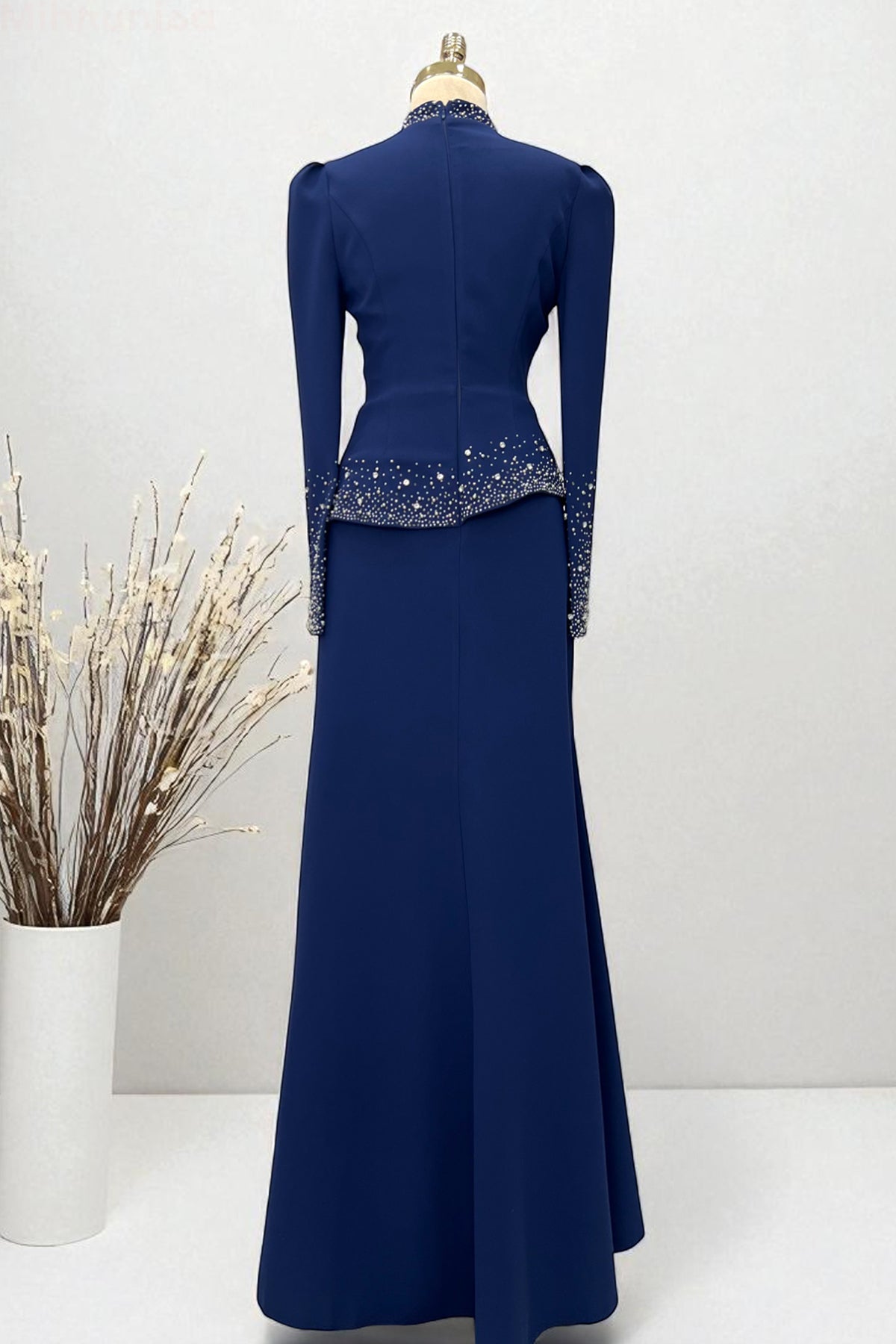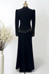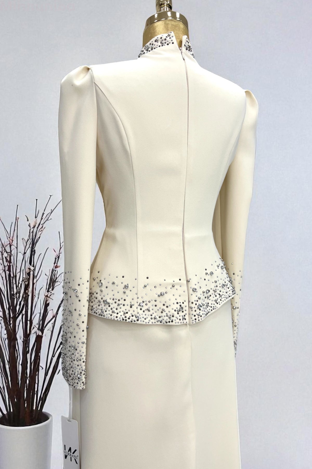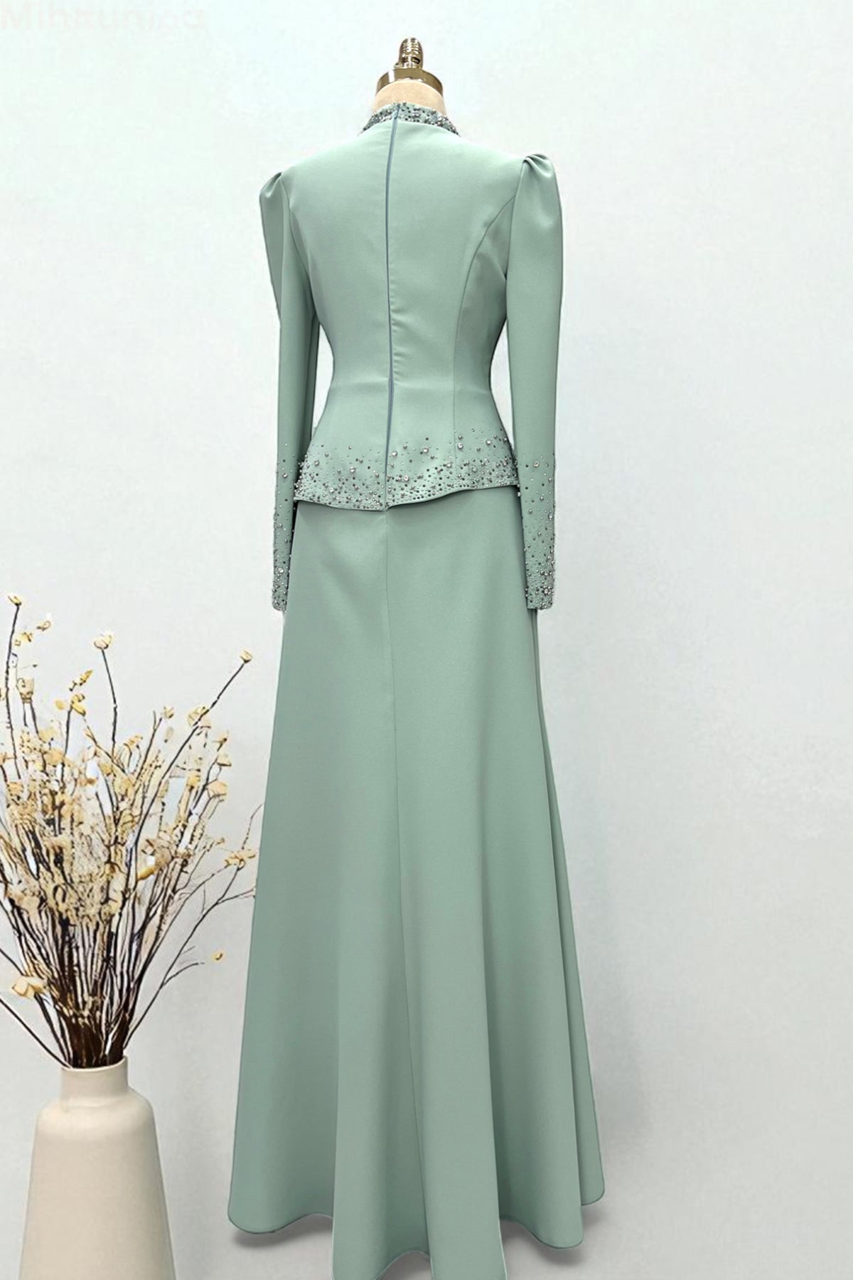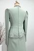 - Kol manşetleri, yaka ve önü taş baskı işleme abiye modelimiz takım görünümünde olup arkadan fermuarlıdır.