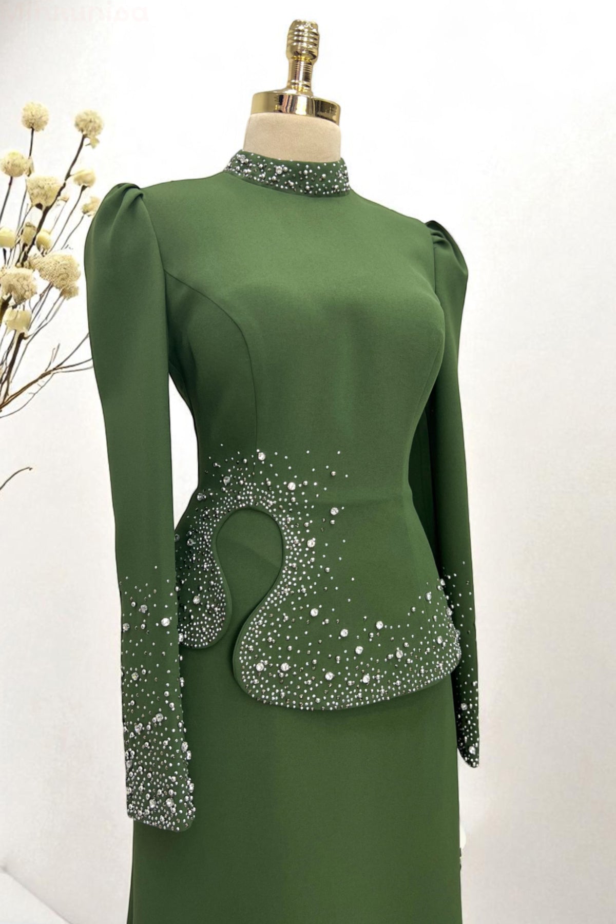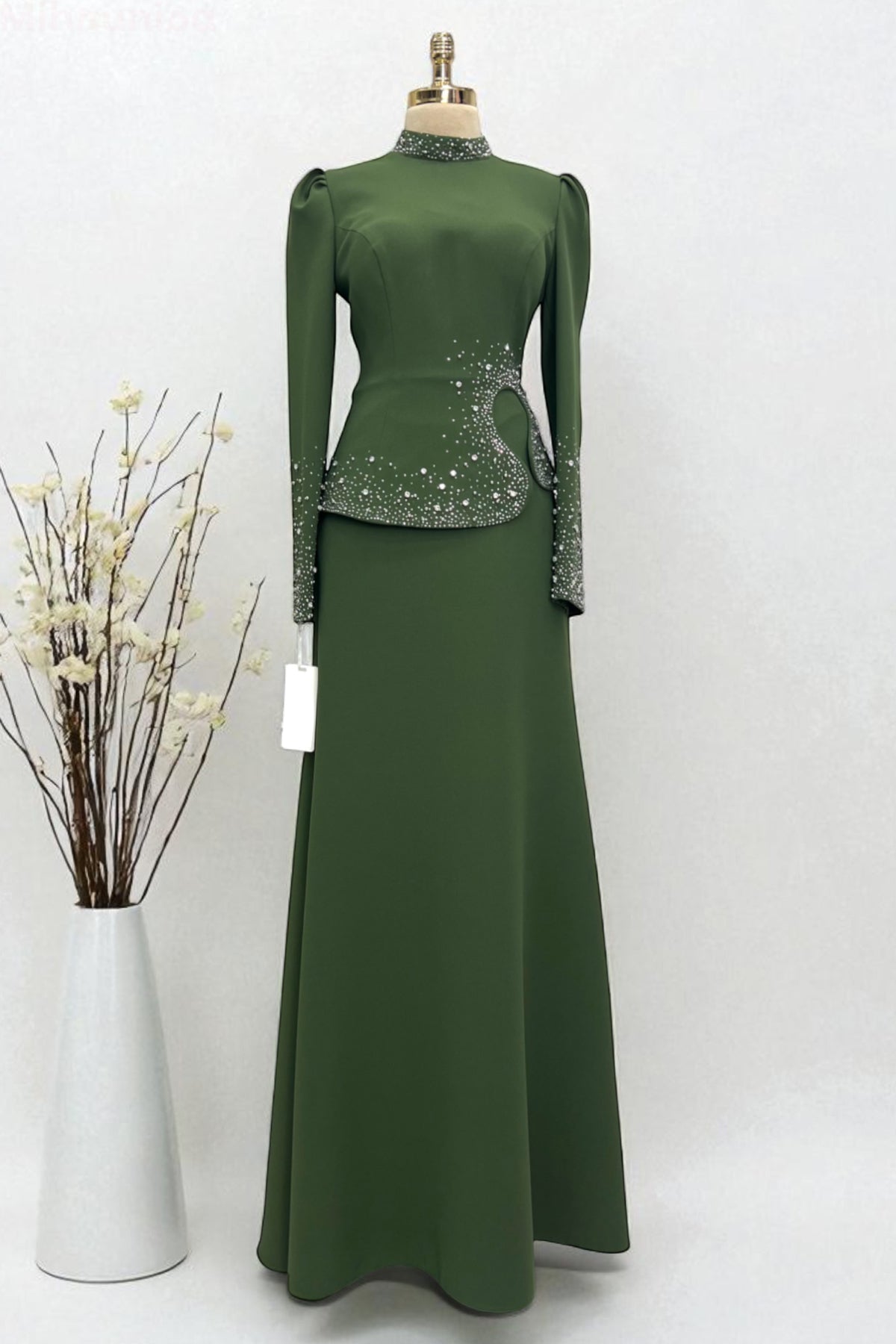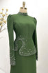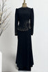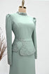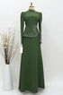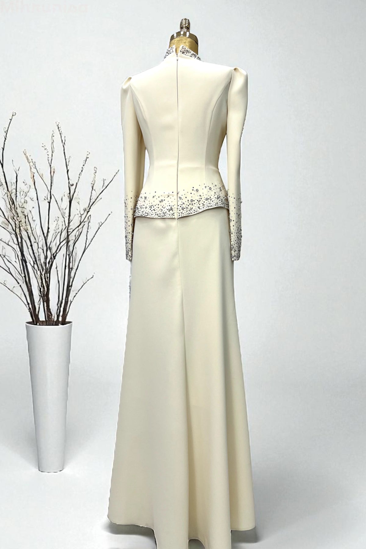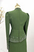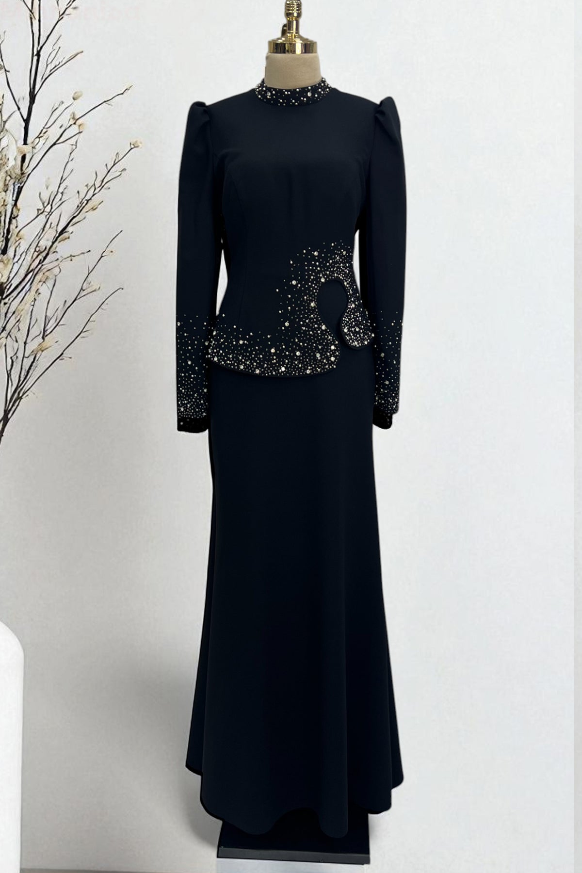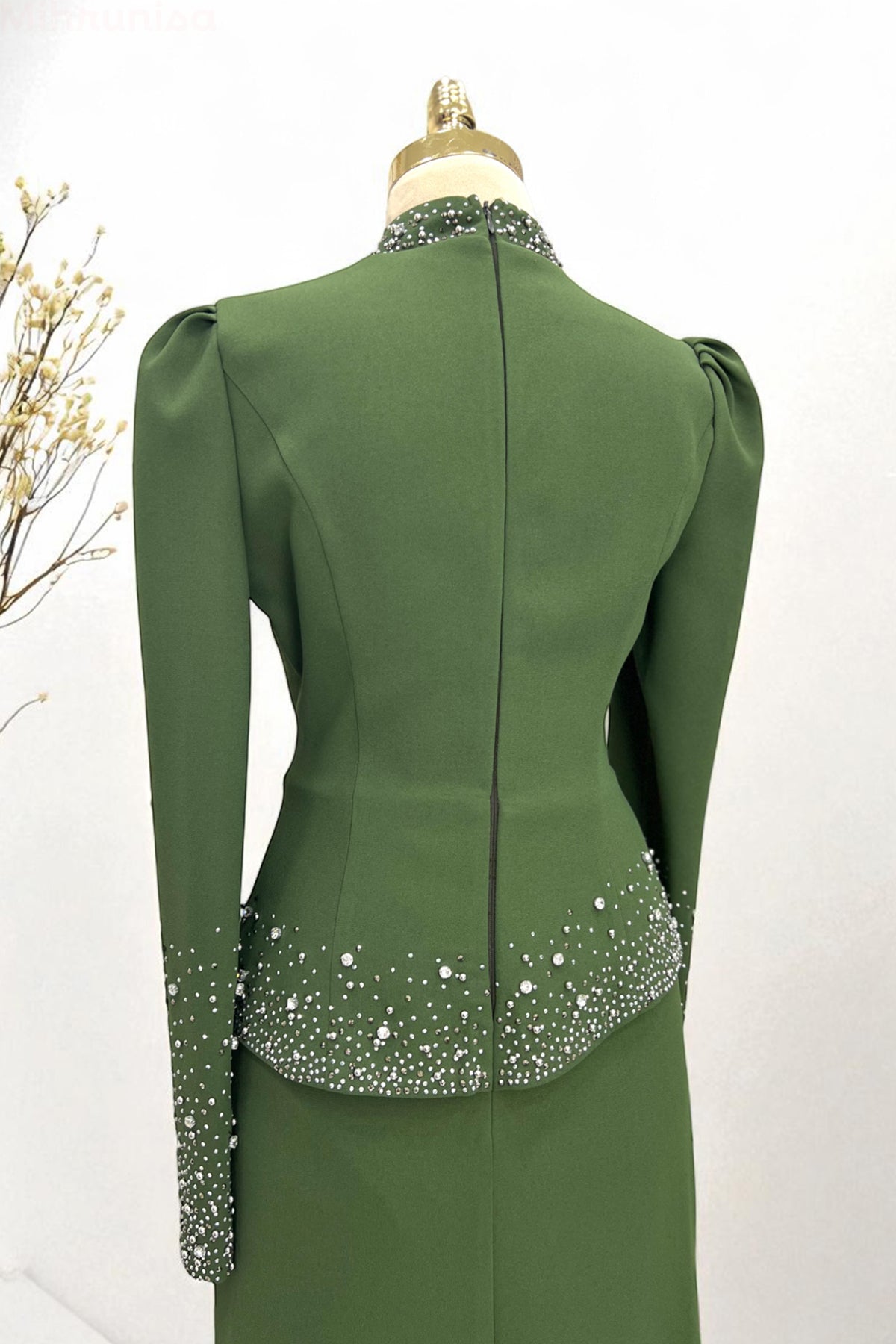 - Kol manşetleri, yaka ve önü taş baskı işleme abiye modelimiz takım görünümünde olup arkadan fermuarlıdır.