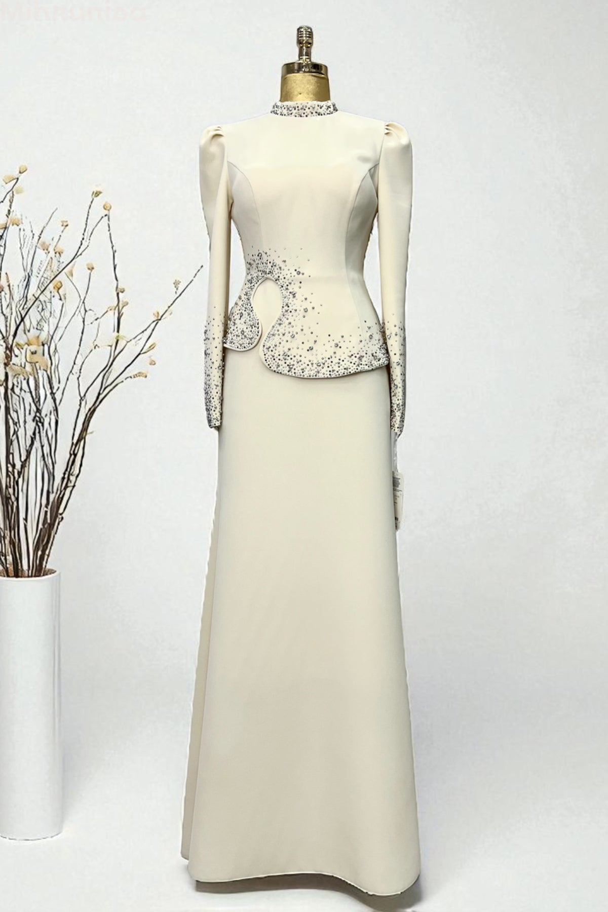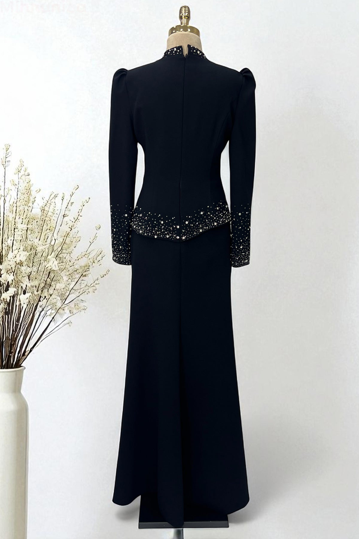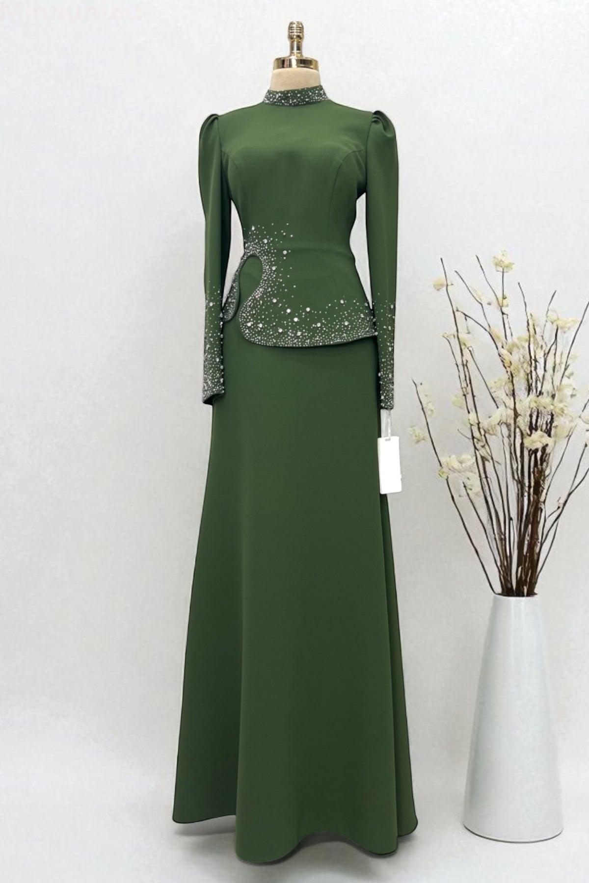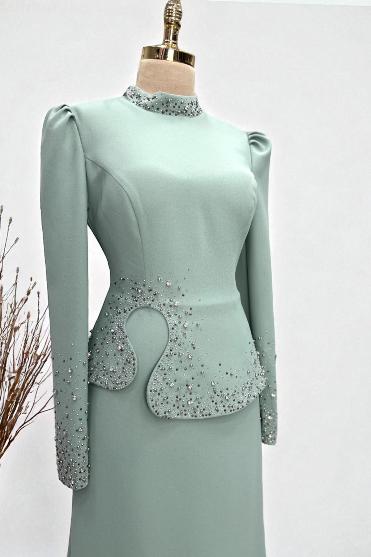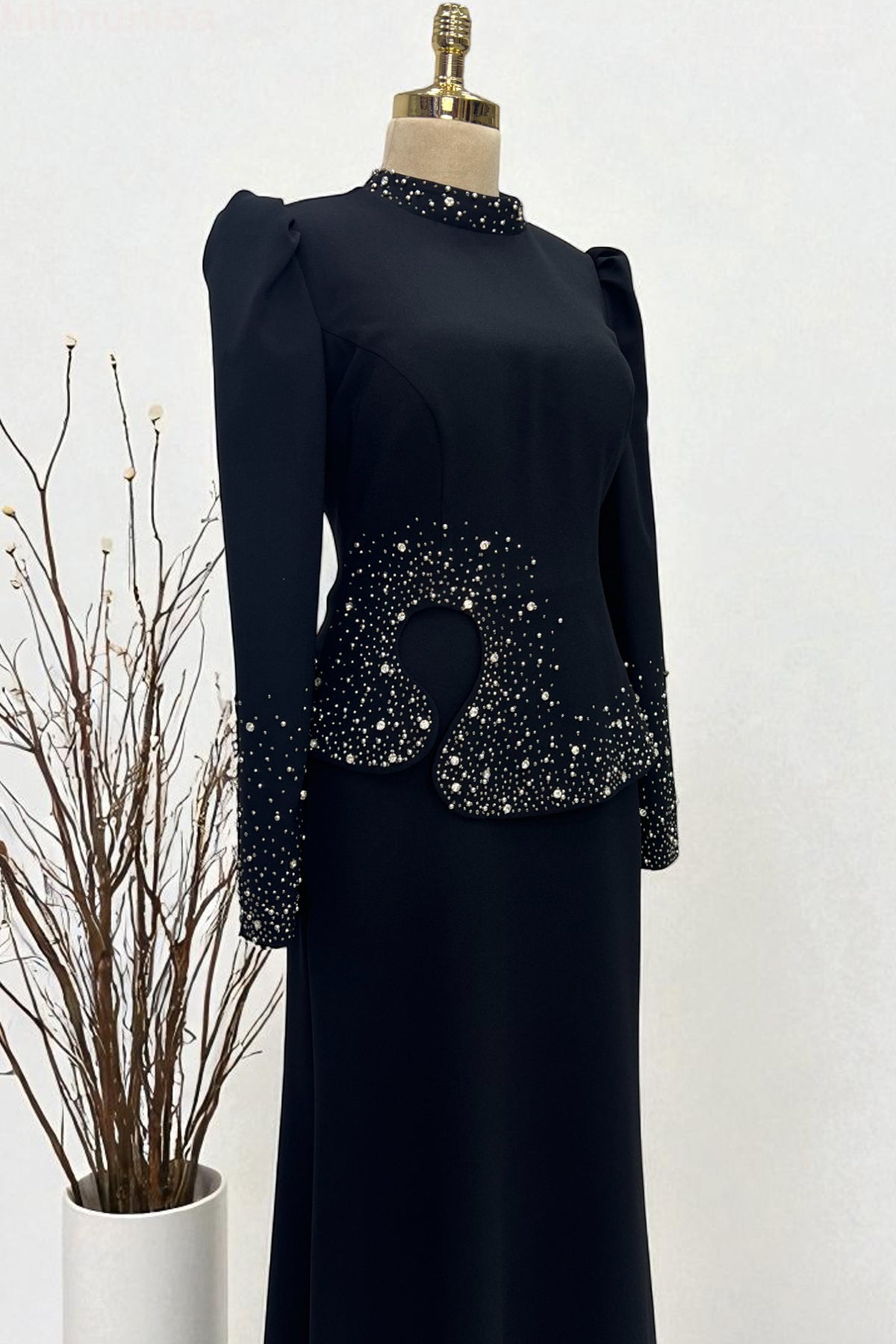 - Kol manşetleri, yaka ve önü taş baskı işleme abiye modelimiz takım görünümünde olup arkadan fermuarlıdır.