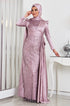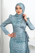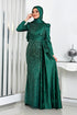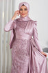 Ön kısmı tamamen pul ve taş işlemeli olan dicle abiye modelimizin pelerin eteğinde tüy detayları olup astarlıdır ve arkadan gizli fermuarlıdır.