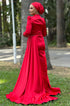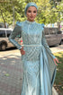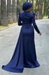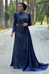 Ürünün belindeki kuyruk pelerin portatiftir çıkarılabilir, yaka ve önü tamamen özel işleme olan abiye modelimiz astarlıdır ve arkadan gizli fermuarlıdır.