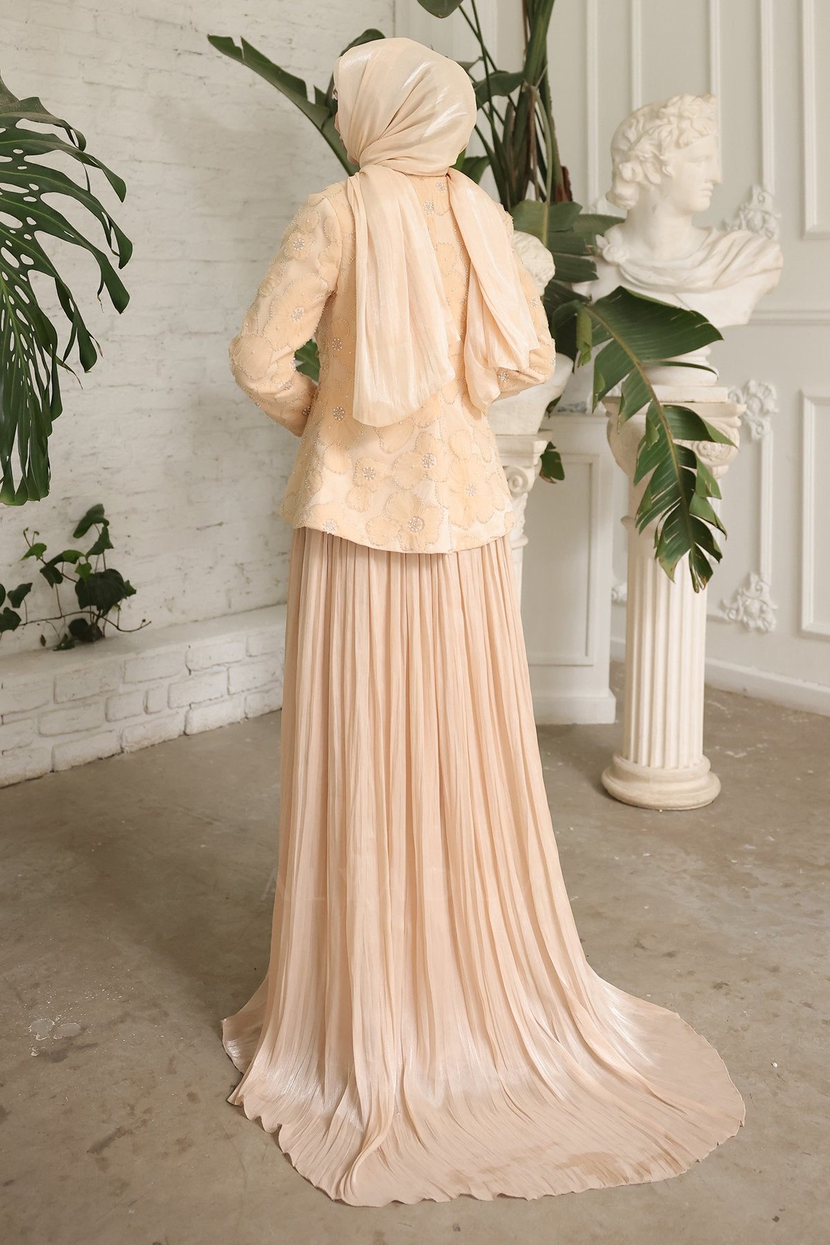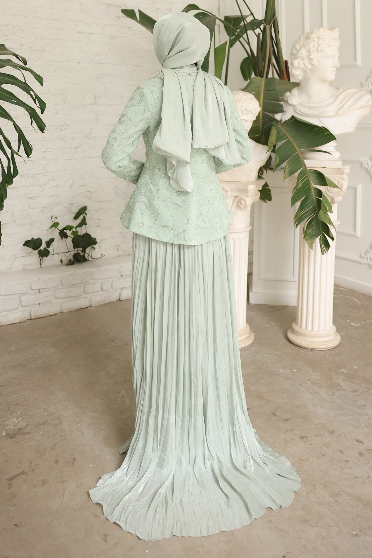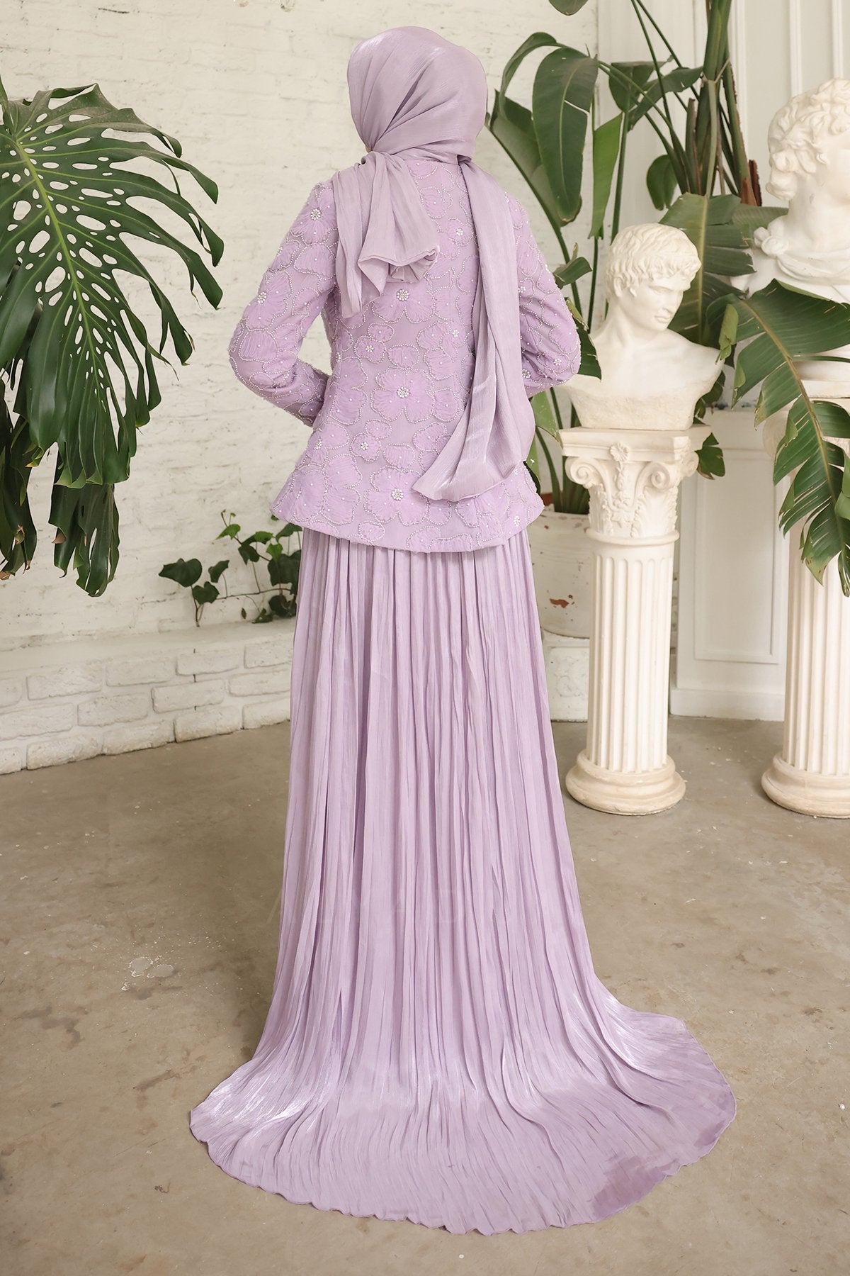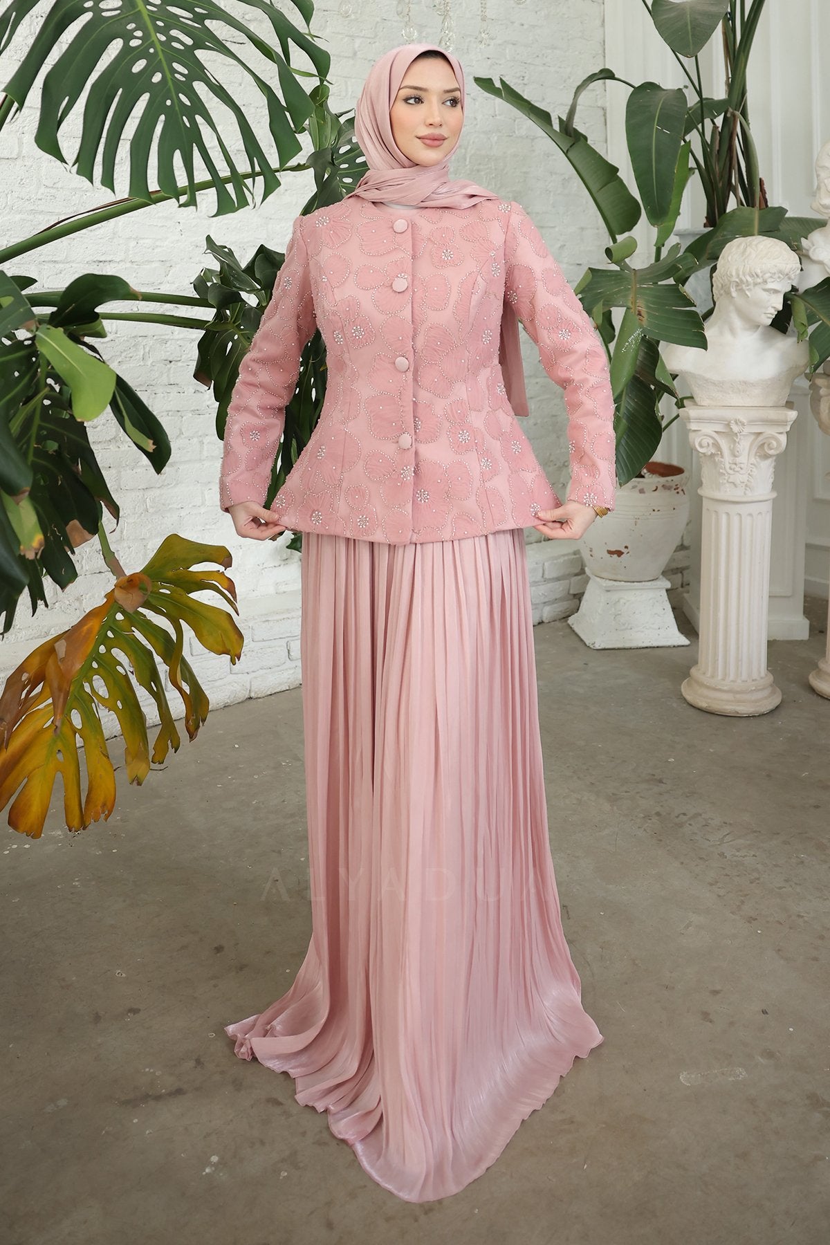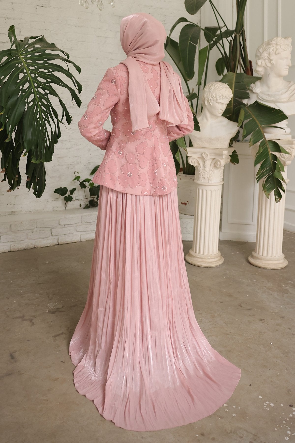 - Pileli etek ve özel tasarım ceket uyumuyla davetlerde zarif, düzenli ve dikkat çekici bir kombin sunar.