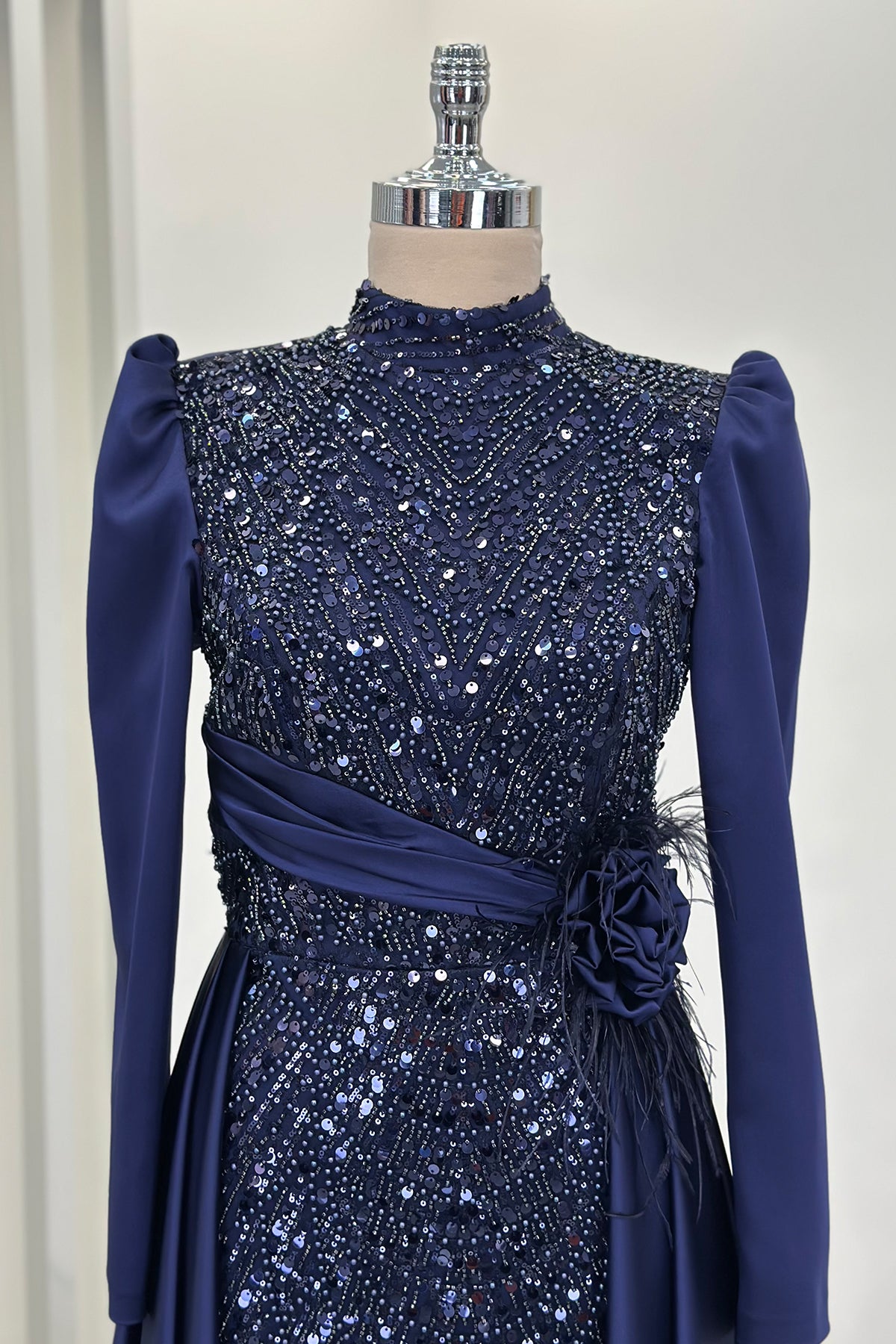 Önü tamamen işlemeli kuyruklu olan modelimiz astarlı olup arkadan gizli fermuarlıdır.