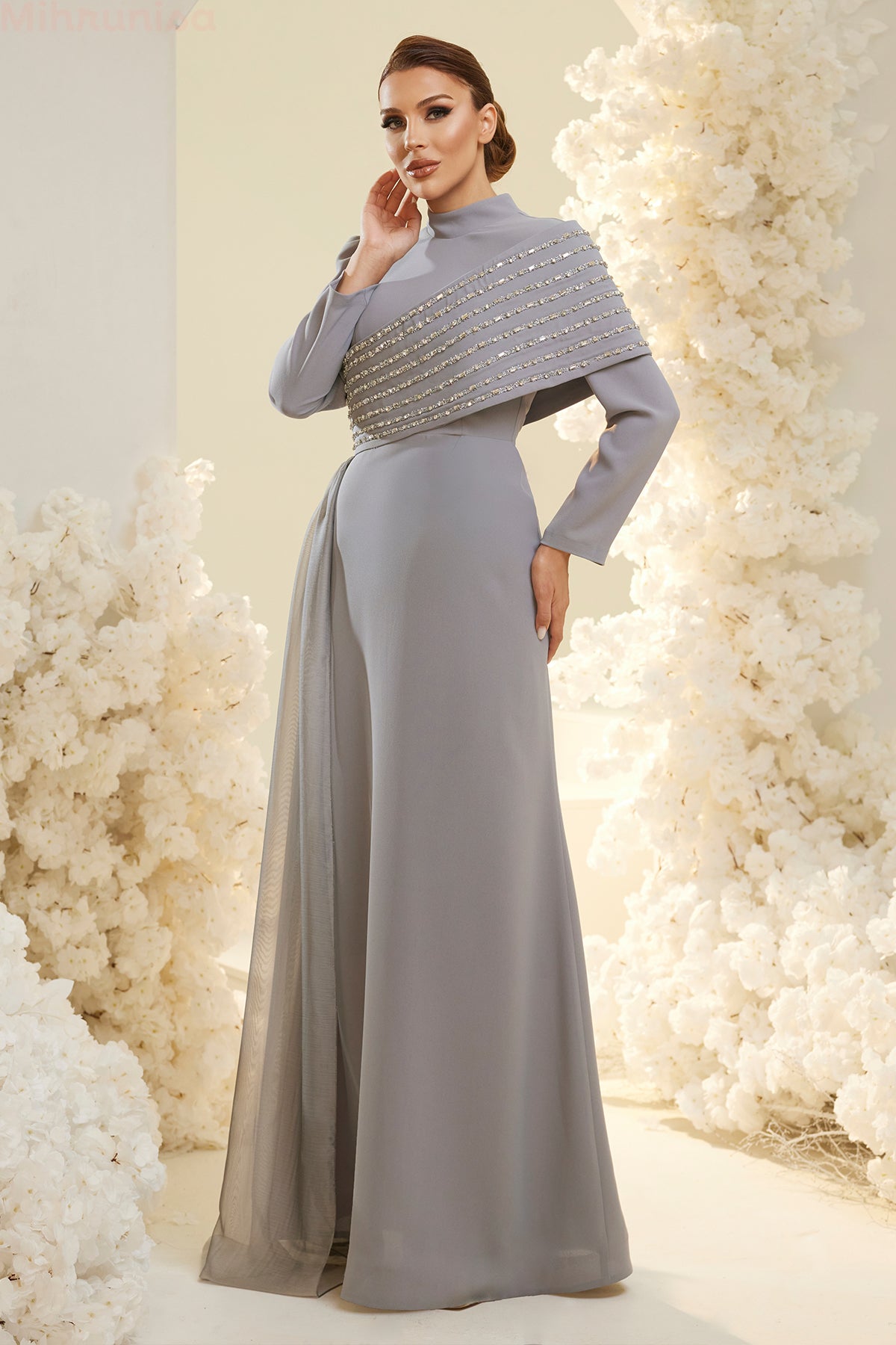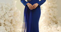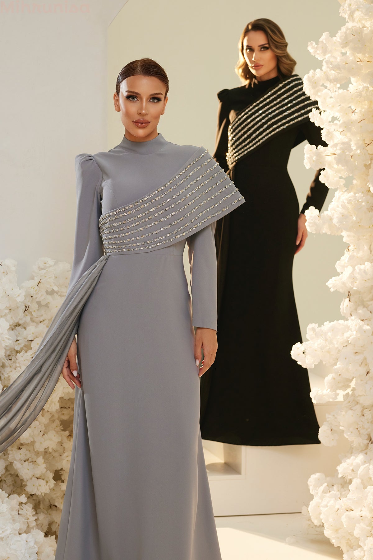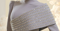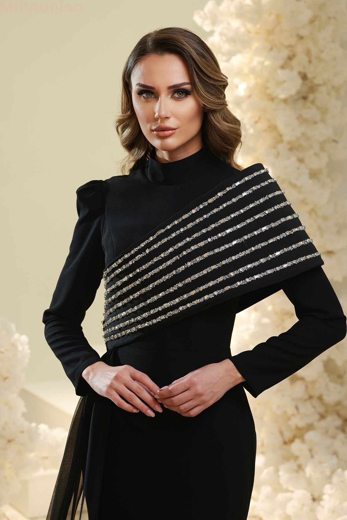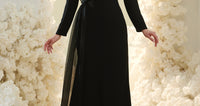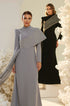 - Asimetrik şerit detayı ve akıcı uzun formuyla özel davetlerde güçlü ve modern bir duruş sunar.