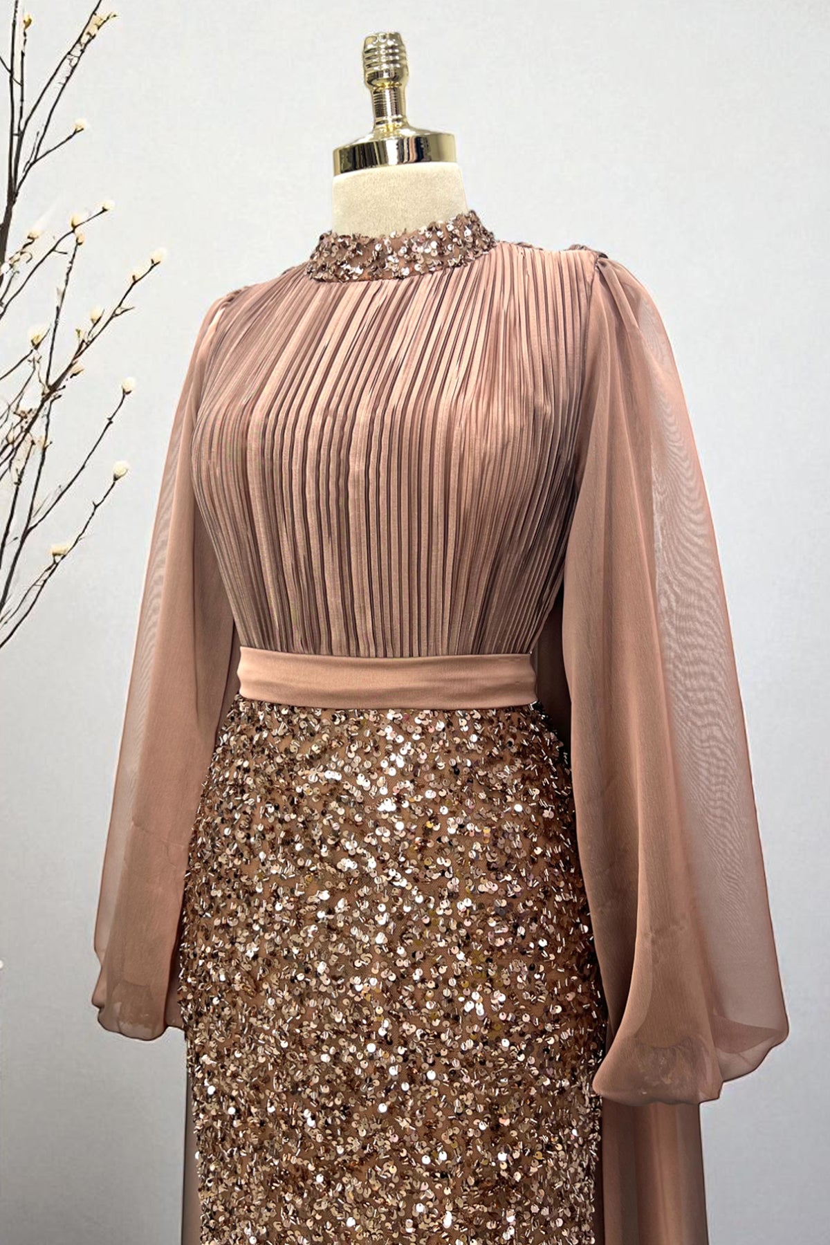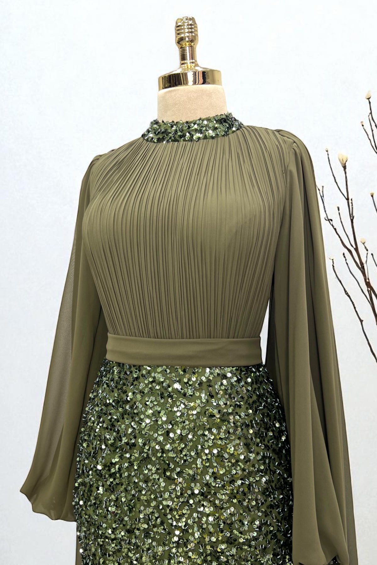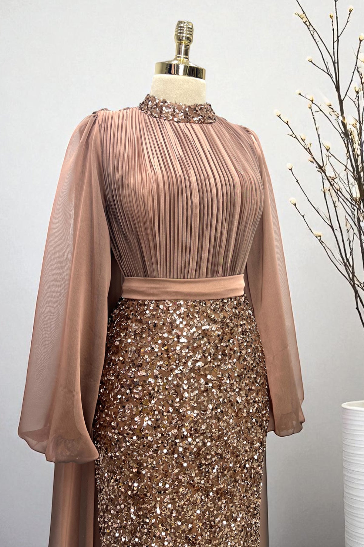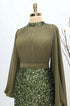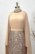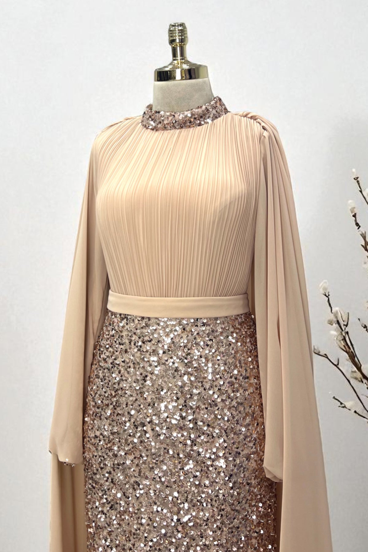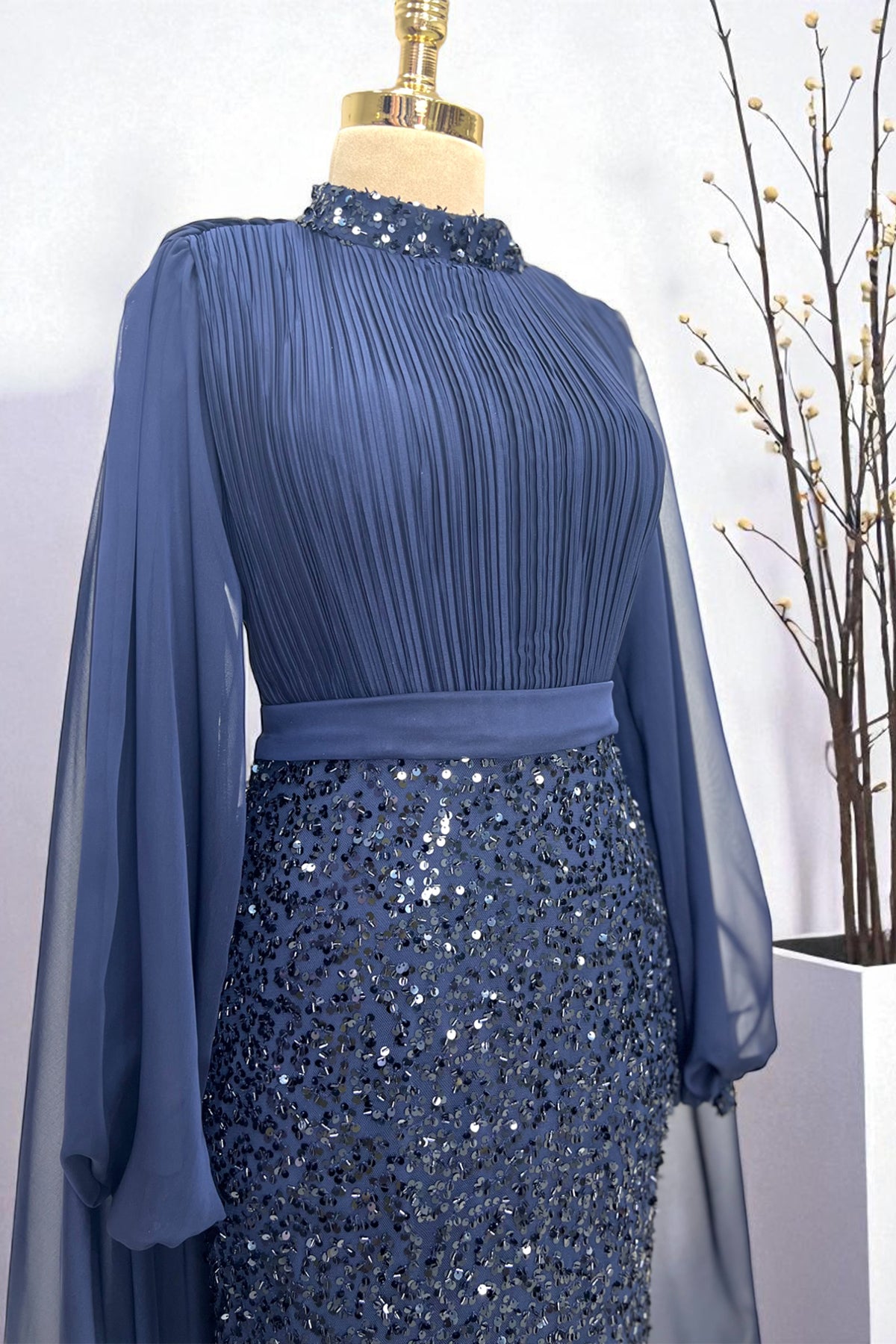 - Omuzdan şifon pelerinli, ışıltılı detayları ve akıcı tasarımıyla özel günlerde şık bir görünüm sunar.
