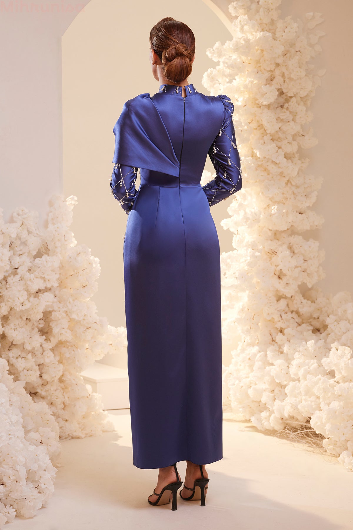 - Önü papyon detaylı ve salkım boncuk dokusuyla dikkat çekici ve zarif bir duruş sunar.