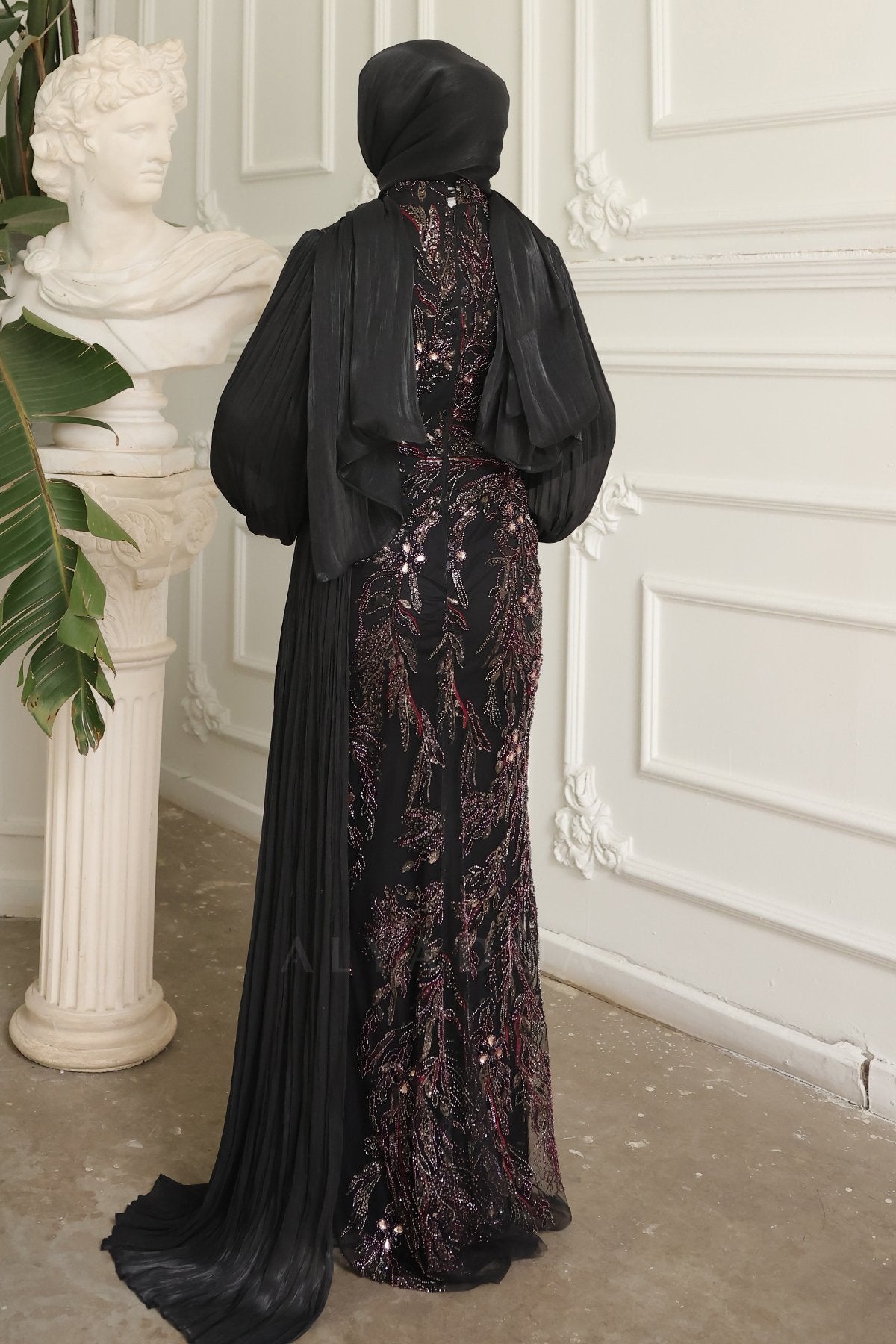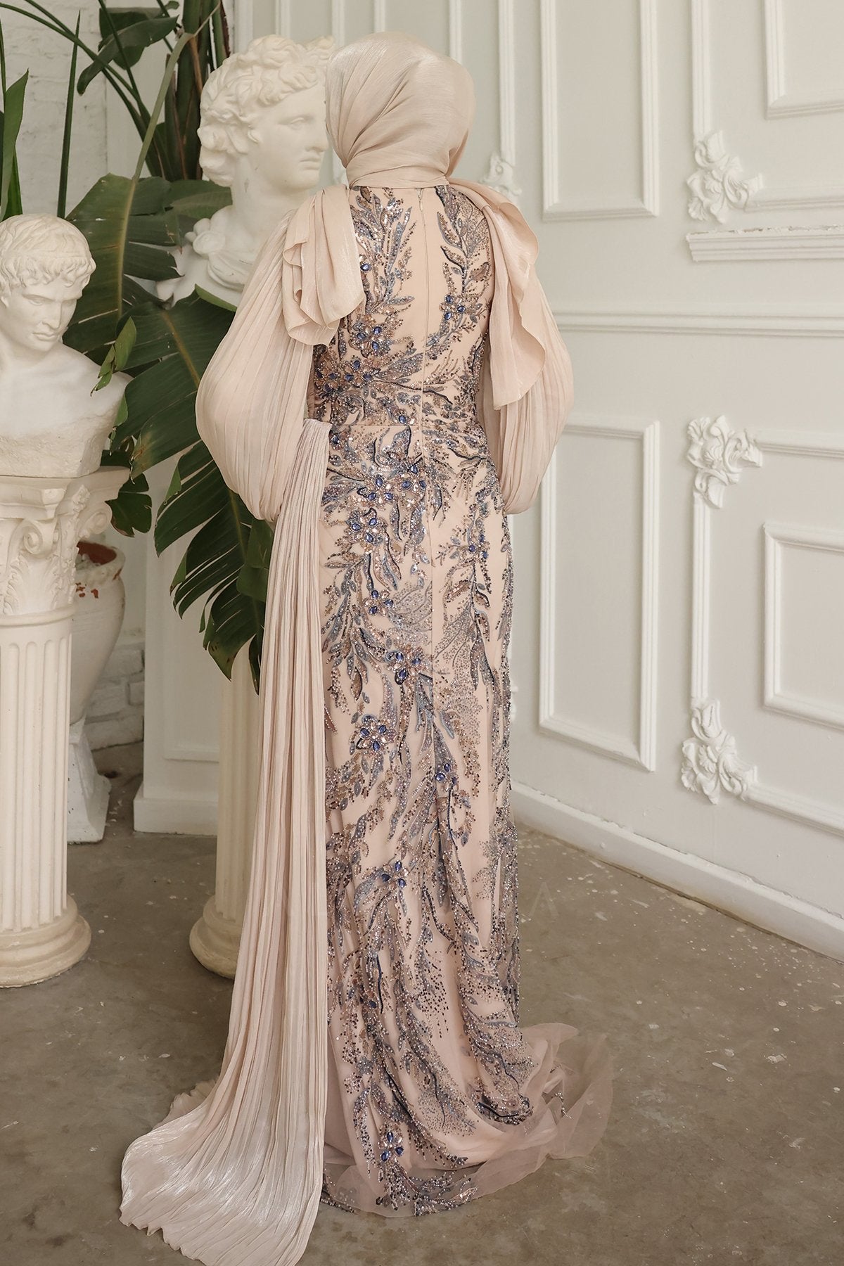 - Akıcı kol formu ve zarif yüzey işlemeleriyle davetlerde feminen ve dengeli bir görünüm sunar.