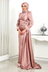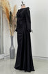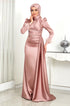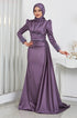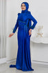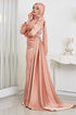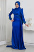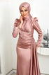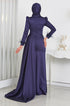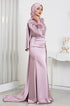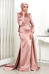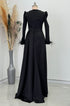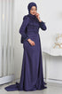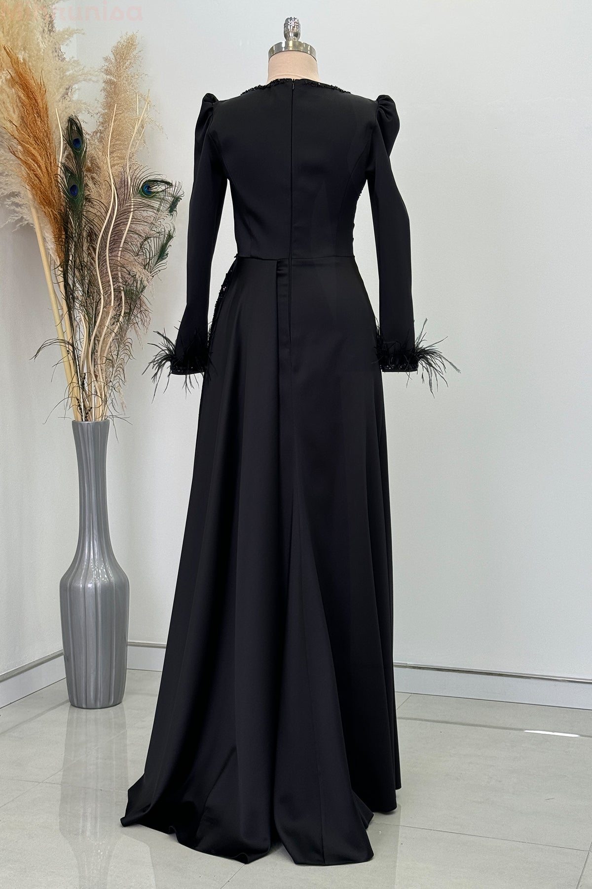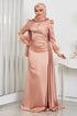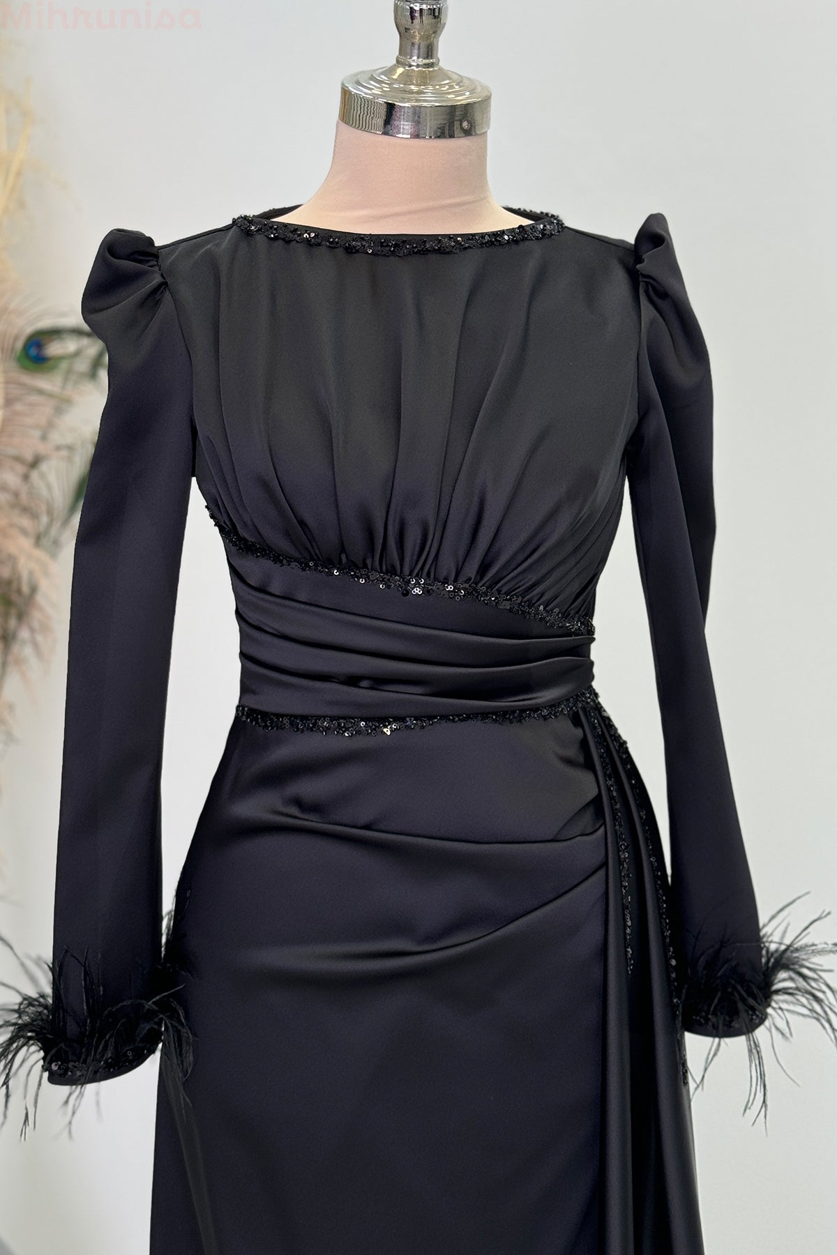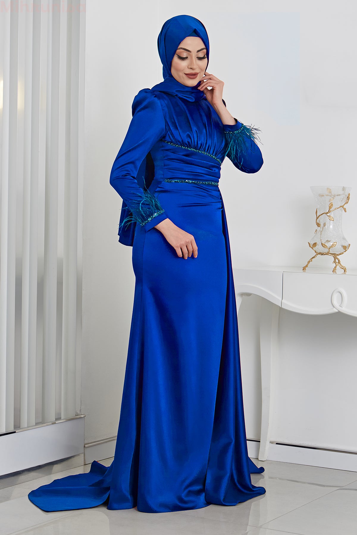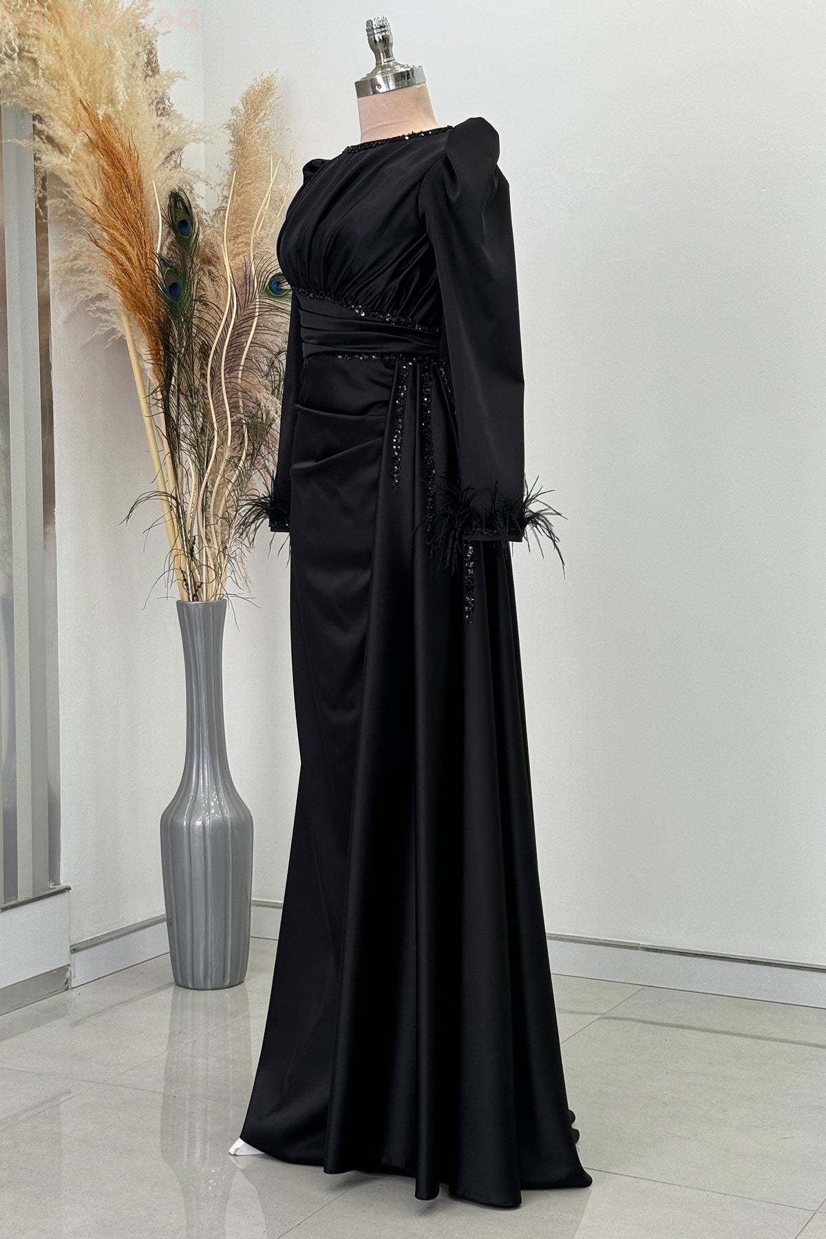 Kol uçlarında taş ve tüy detayları olan marinette abiye modelimiz pelerin kuyruğa sahip olup astarlıdır ve arkadan gizli fermuarlıdır.