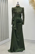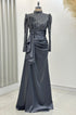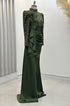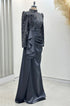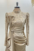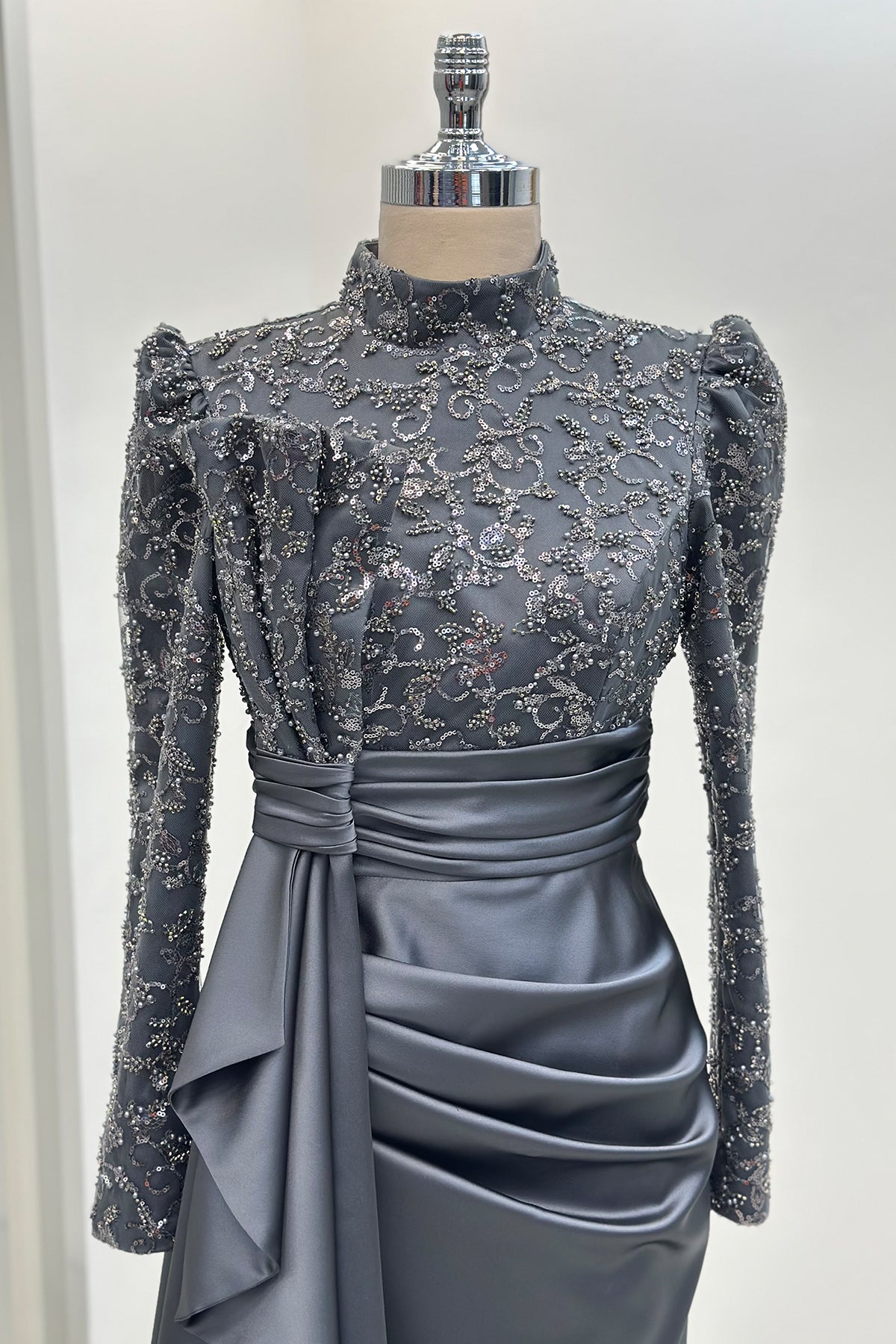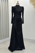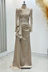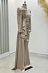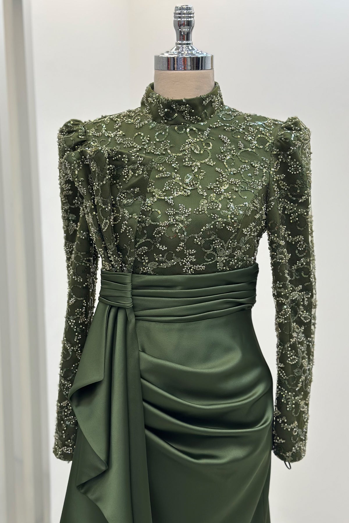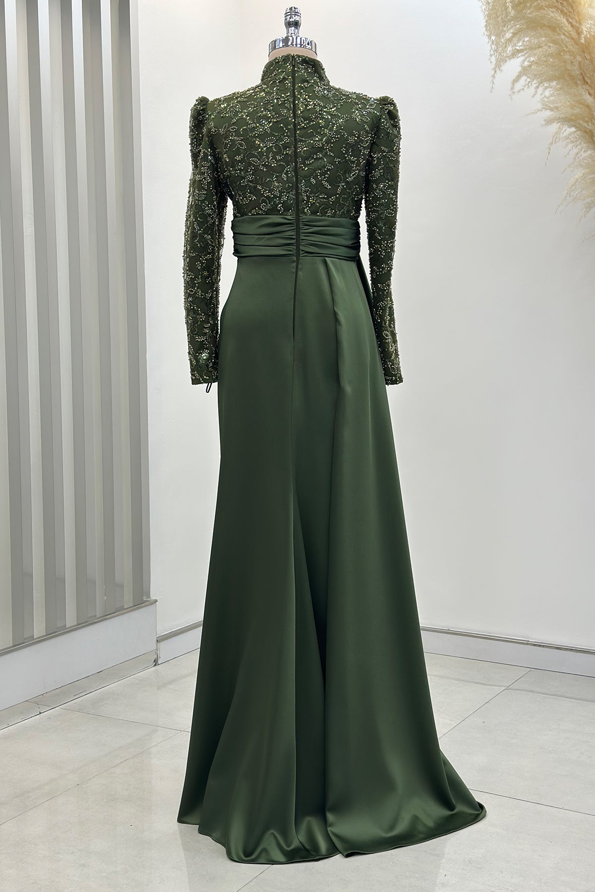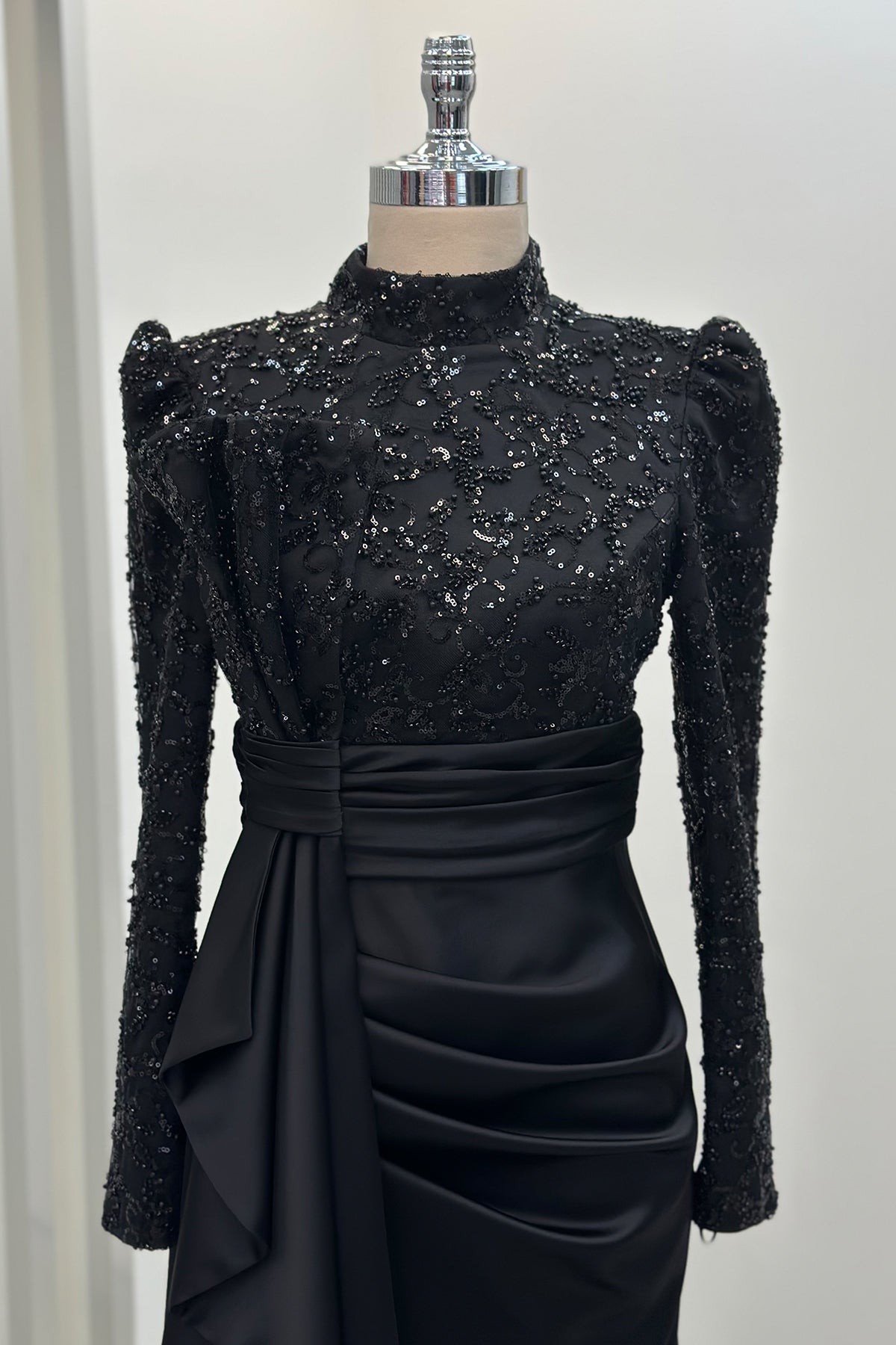 Üst kısmı ve kollarında taş işlemeleri yapılan belinde papyon detayı olan merva abiye modelimiz arkadan gizli fermuarlı olup astarlıdır.