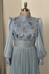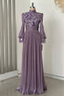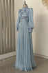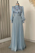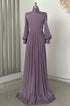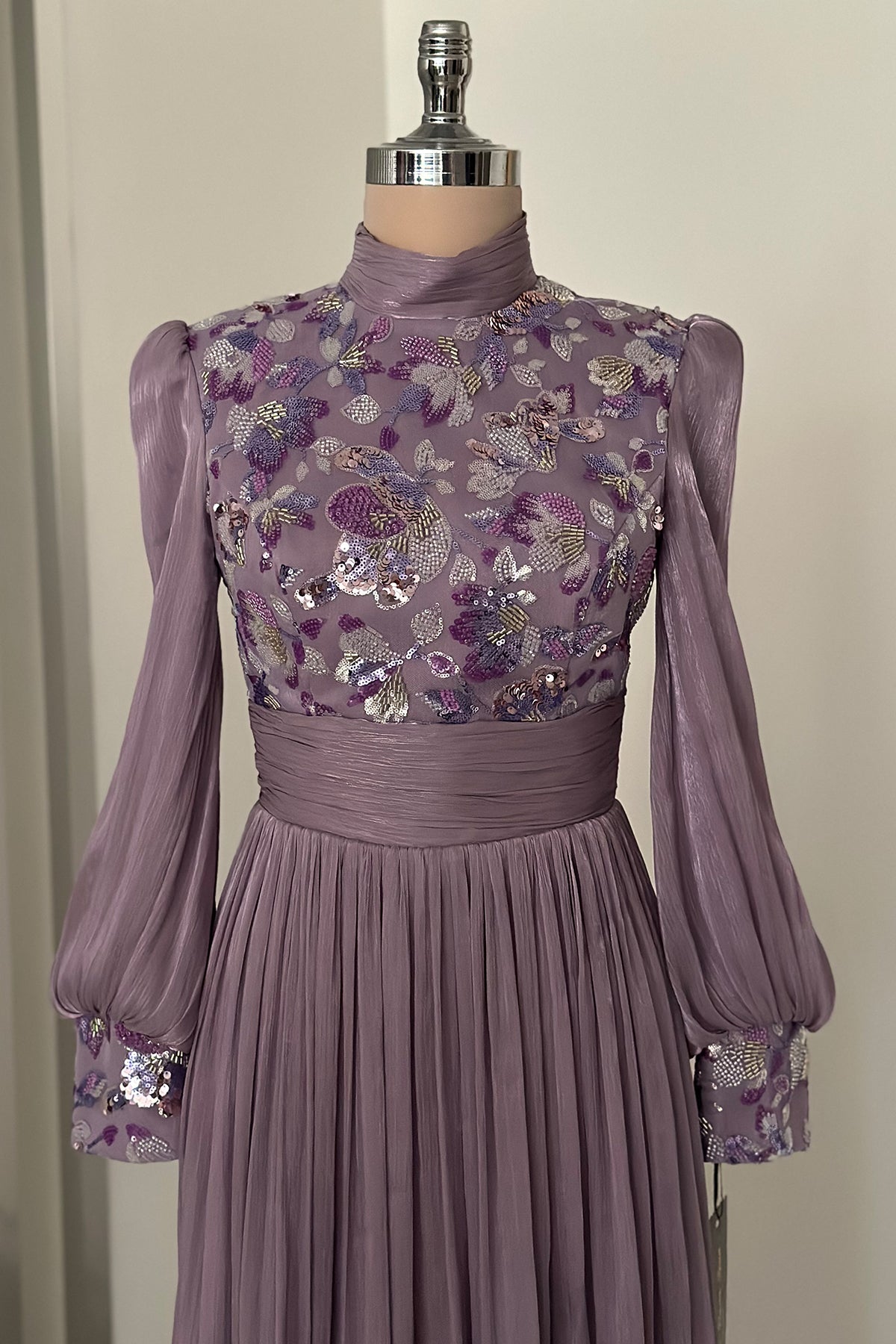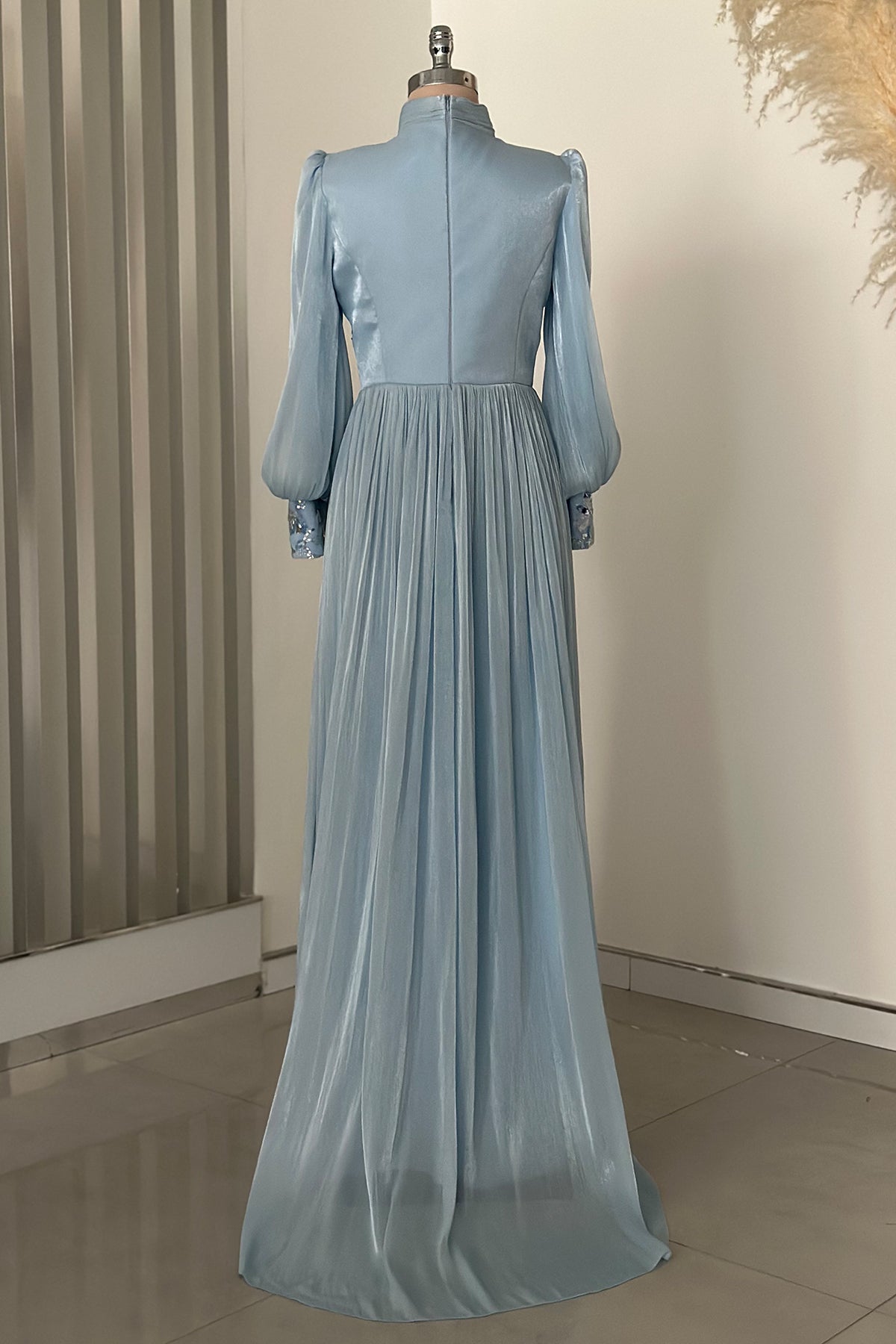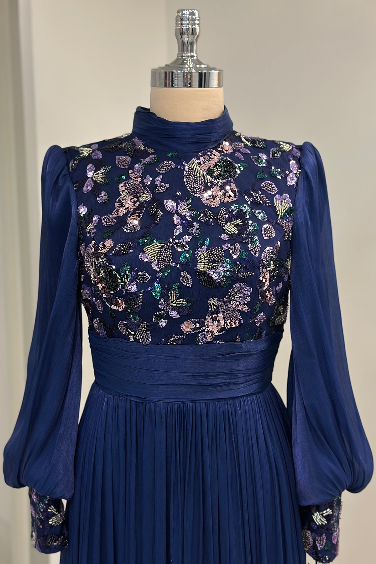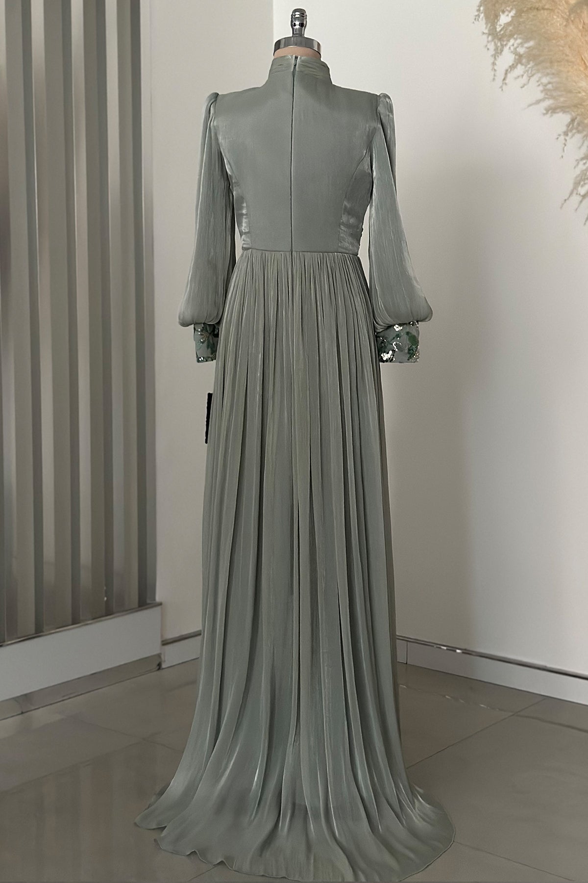 Amerikan şifon kumaş ve üst kısmında boncuk işlemesi ve balon kol tasarım olan nadia abiye modelimiz arkadan gizli fermuarlı olup astarlıdır.