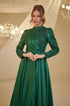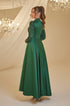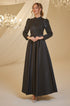 Hakim yaka olup drape detaylı ve eteği pileli tasarlanmış payet işlemeli saten payet abiye modelimiz arkadan gizli fermuarlı olup astarlıdır.
