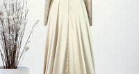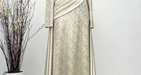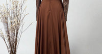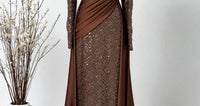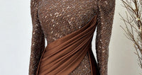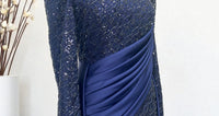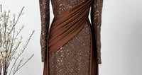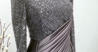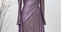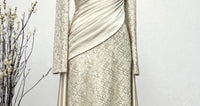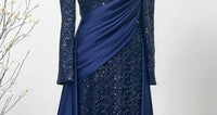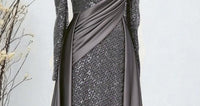 - Drapeli etek panelleri ve dokulu üst tasarımıyla özel davetlerde modern ve zarif bir görünüm sunar.