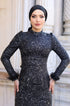 Özel simli kumaş olup bilek kısmında tül detayı olan sakura abiye modelimiz arkadan gizli fermuarlı olup astarlıdır.
