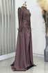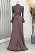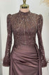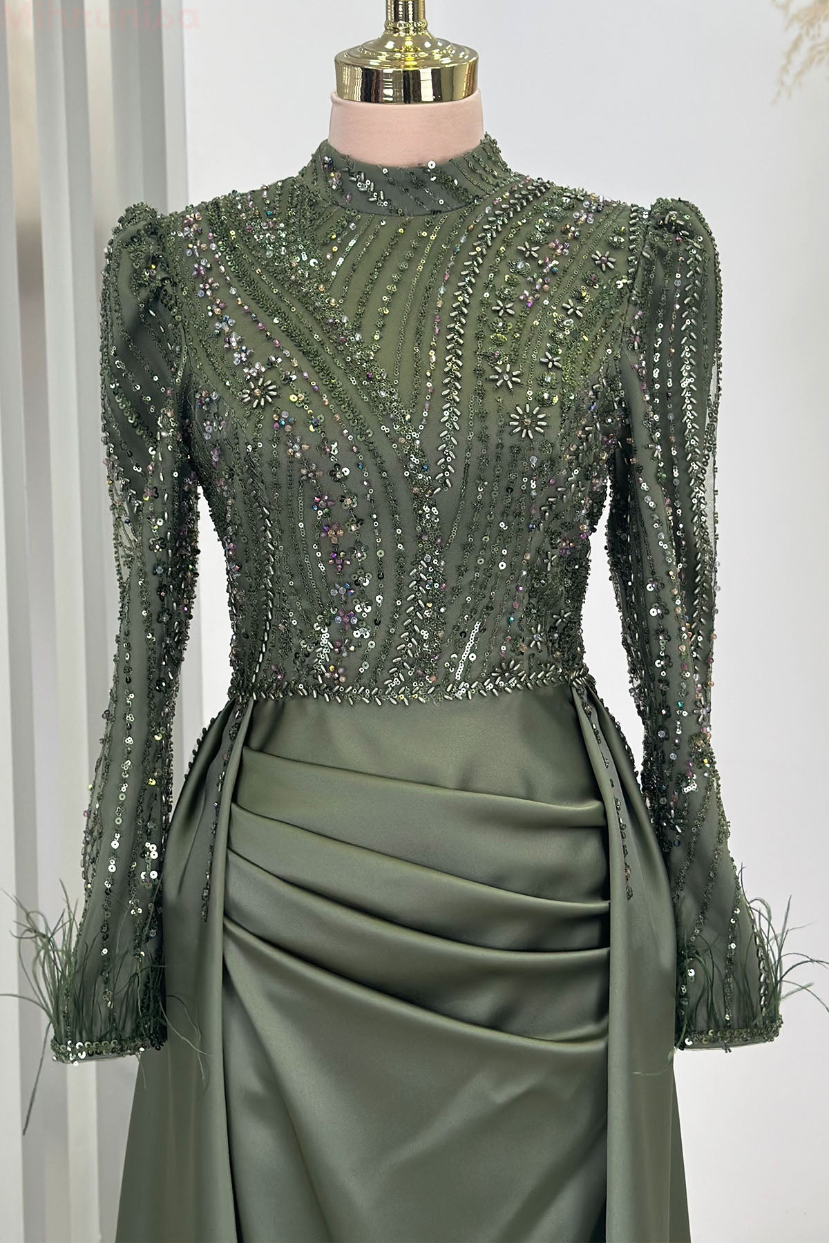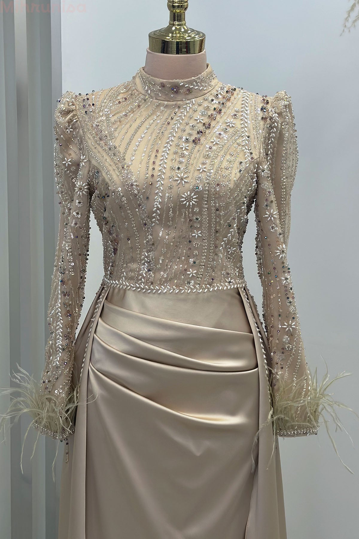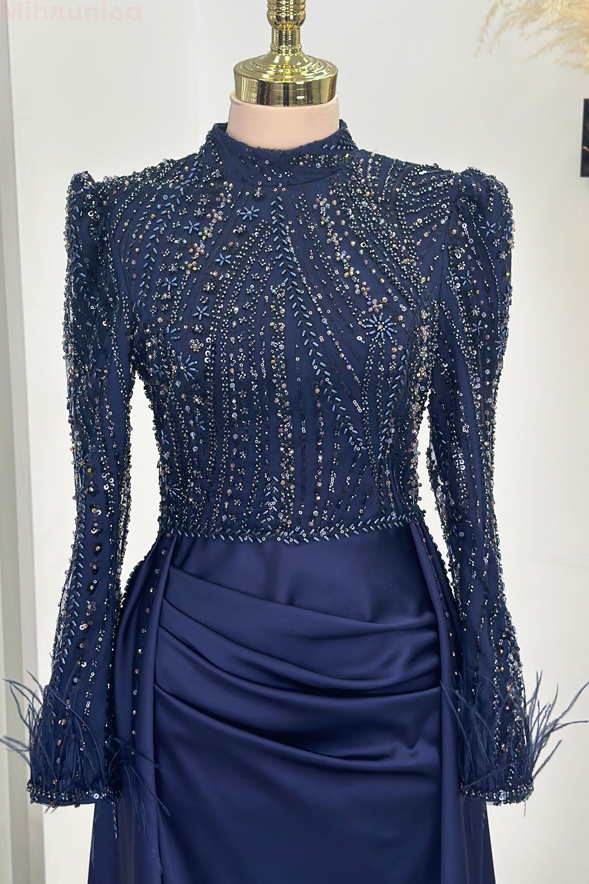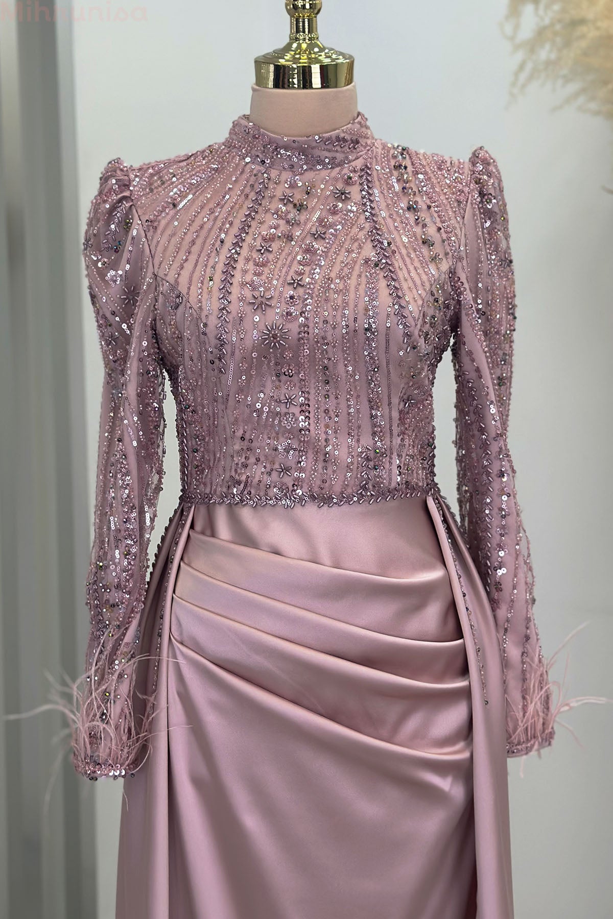 Kol uçları tüy detaylı üstü tamamen işlemeli pelerin kuyruklu sherry abiye modelimiz astarlı ver arkadan gizli fermuarlıdır.