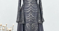 - Pelerin panelleri ve detaylı ışıltı deseniyle özel davetlerde güçlü ve zarif bir duruş sunar.