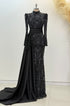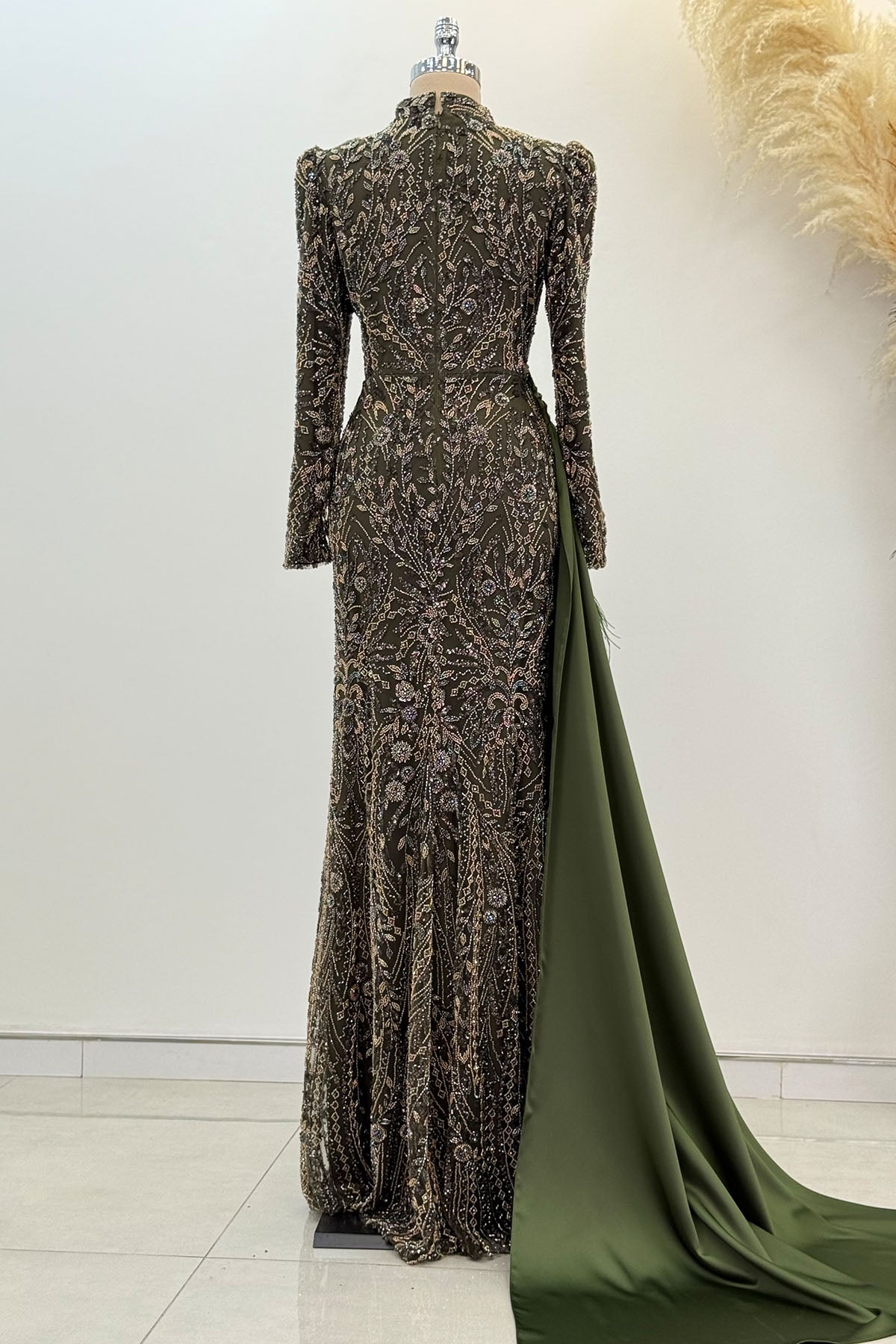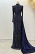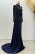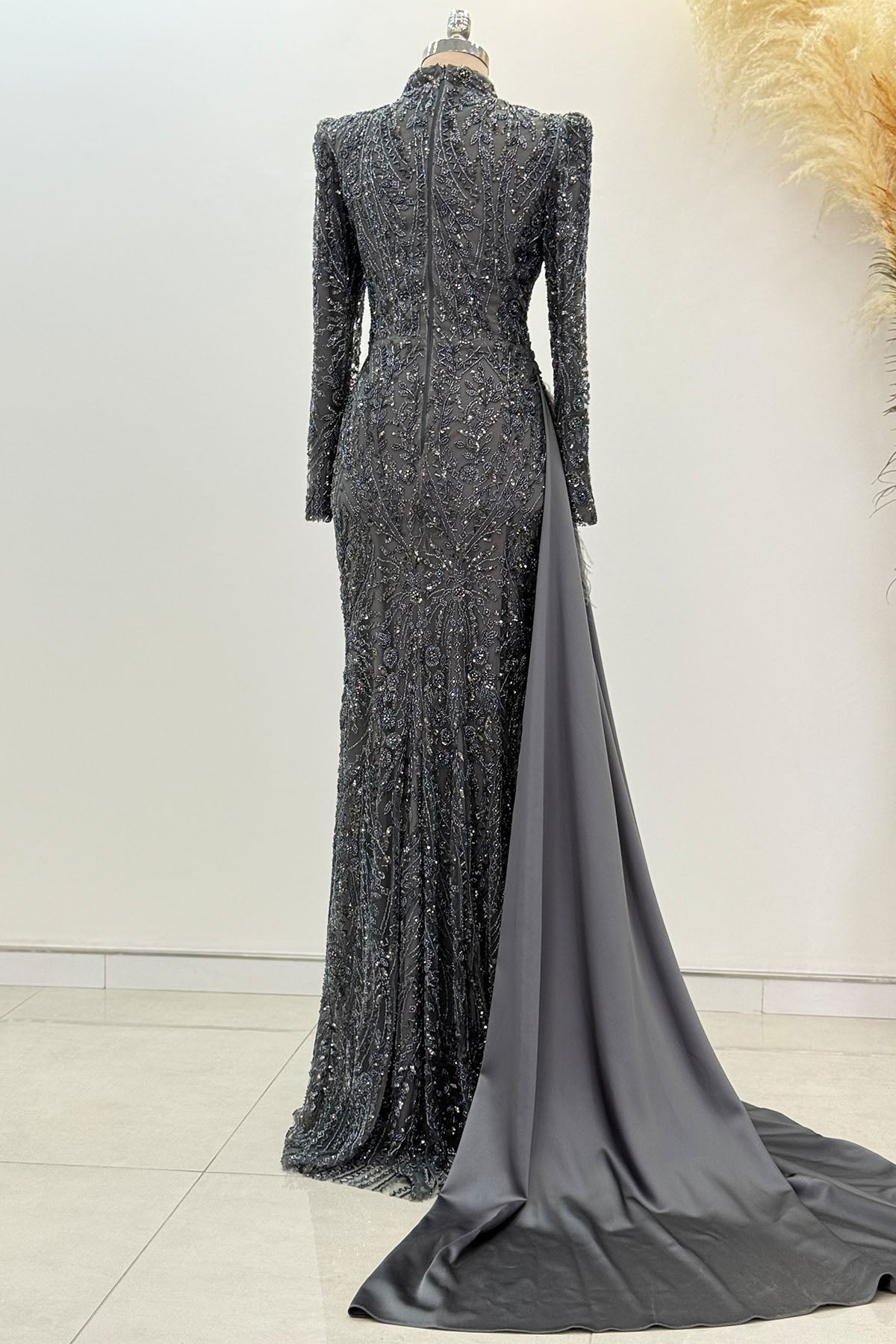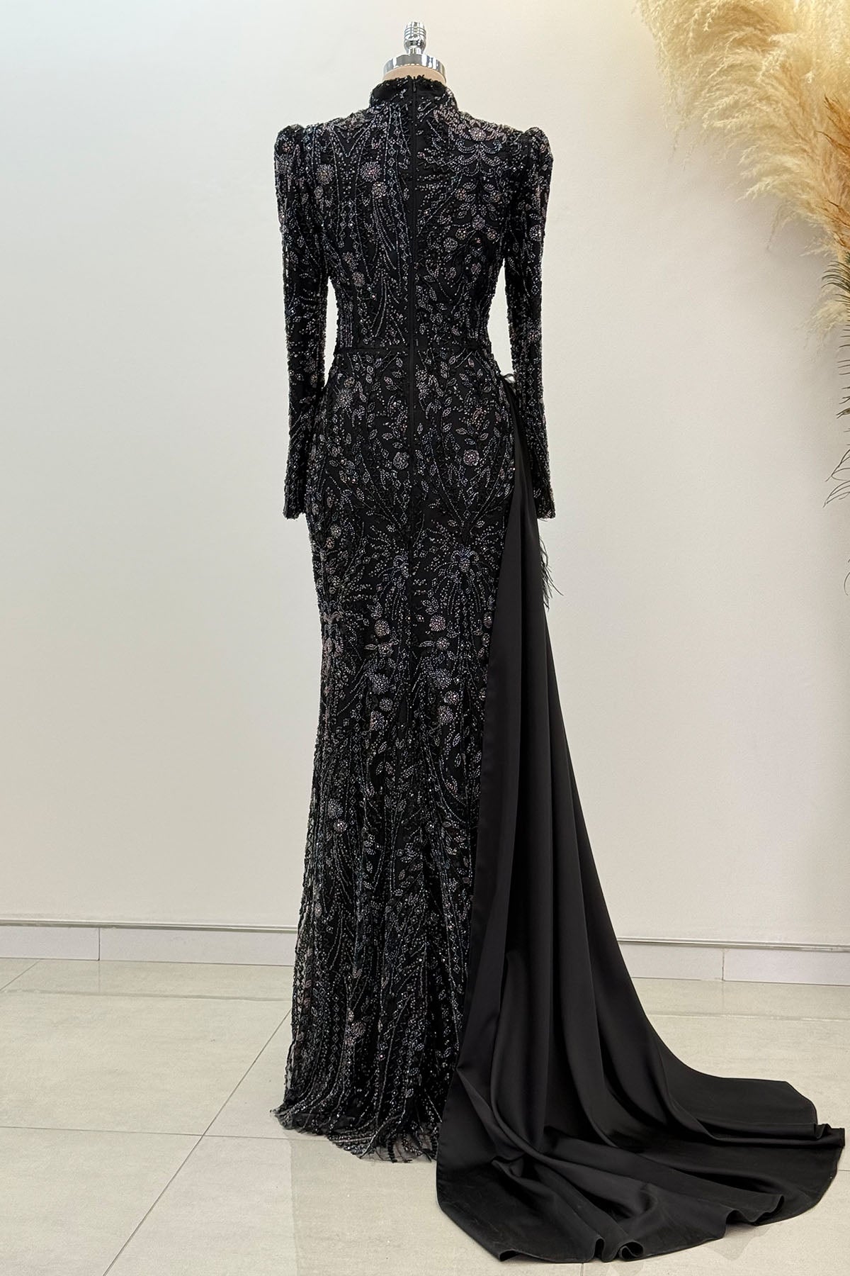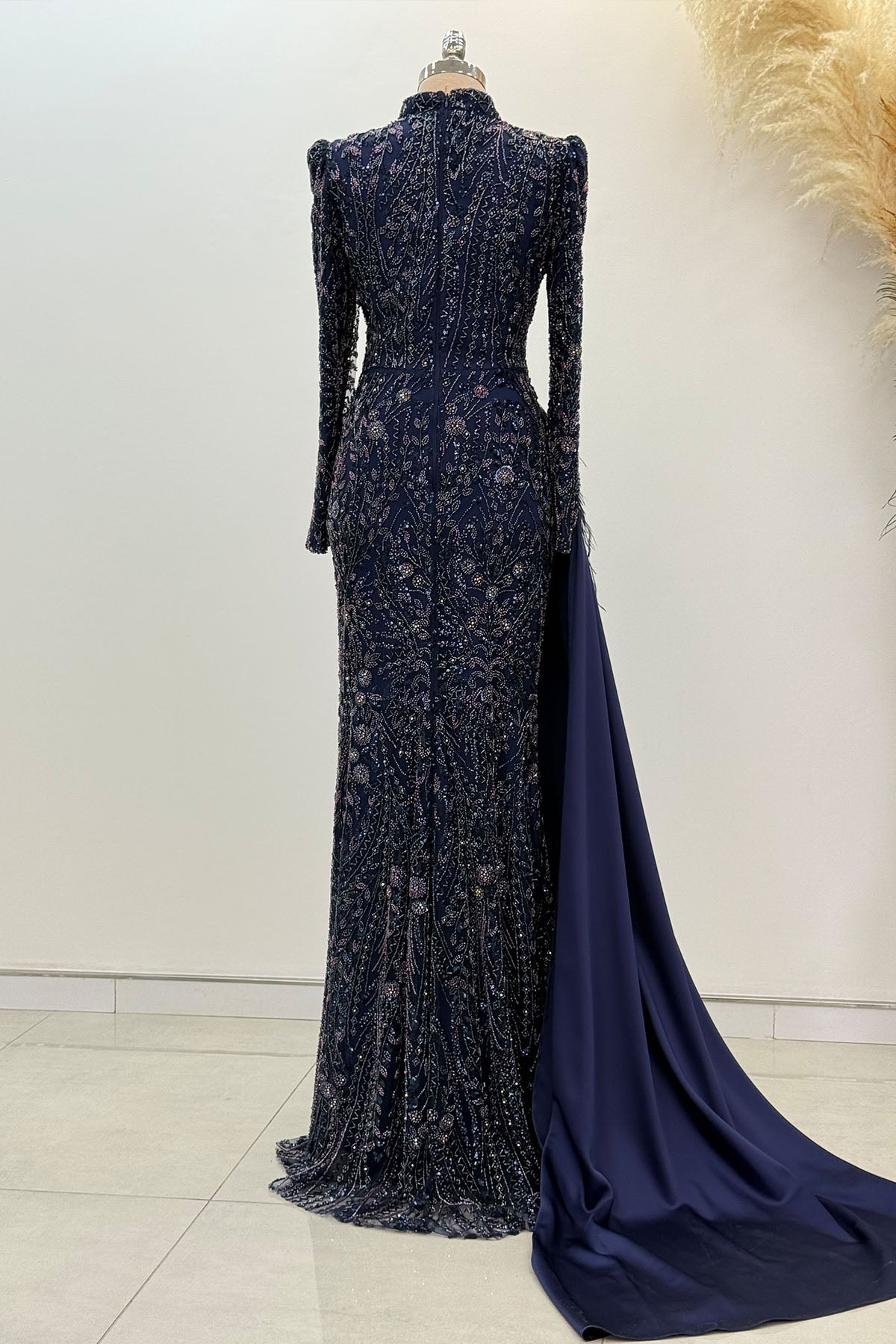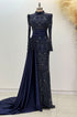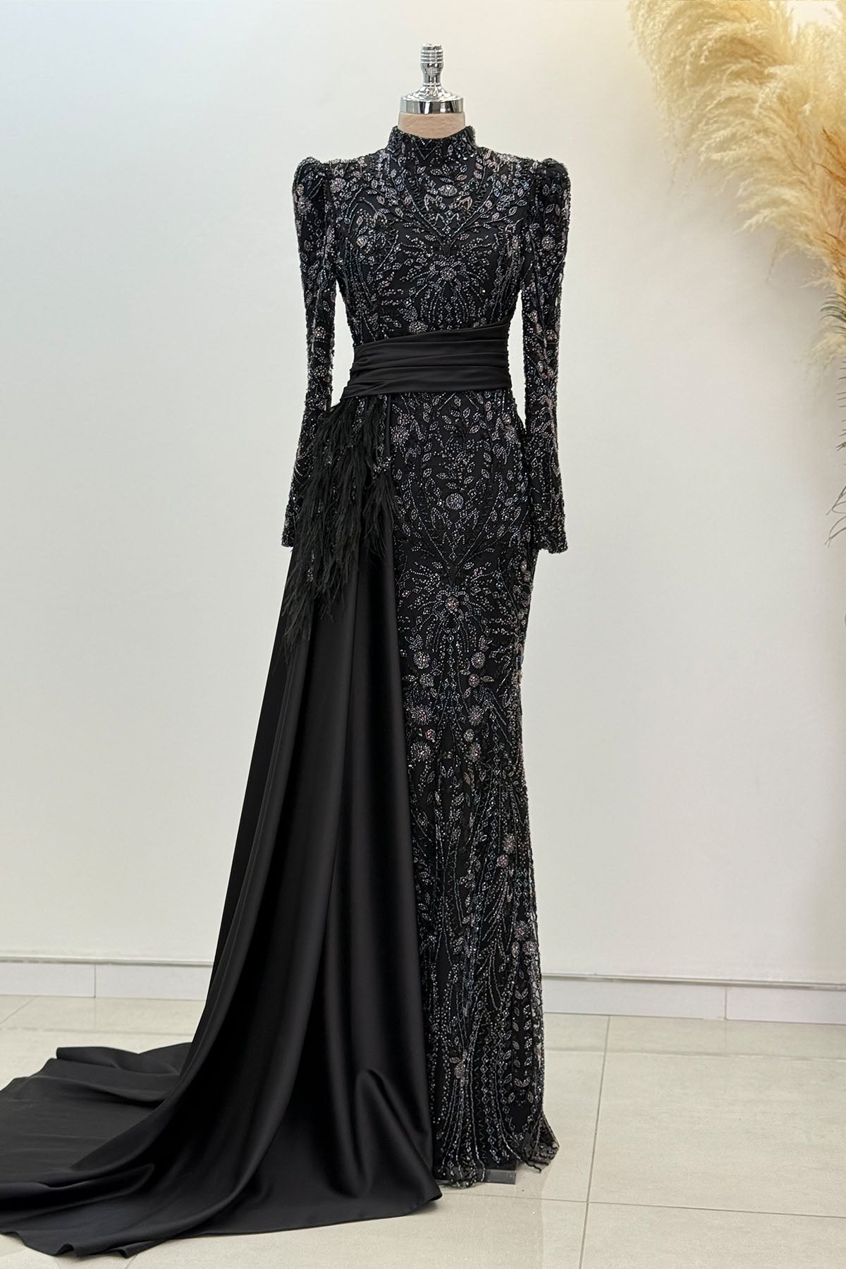 Tamamı cam boncuk işlemeli zenna abiye modelimizin belinde tüylü kuyruk detay olup astarlıdır ve arkadan gizli fermuarlıdır.